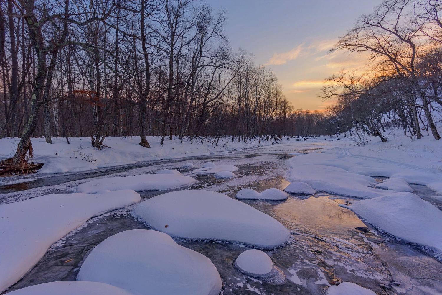Небольшая горная речка, приток р.Рудной. Январь 2023