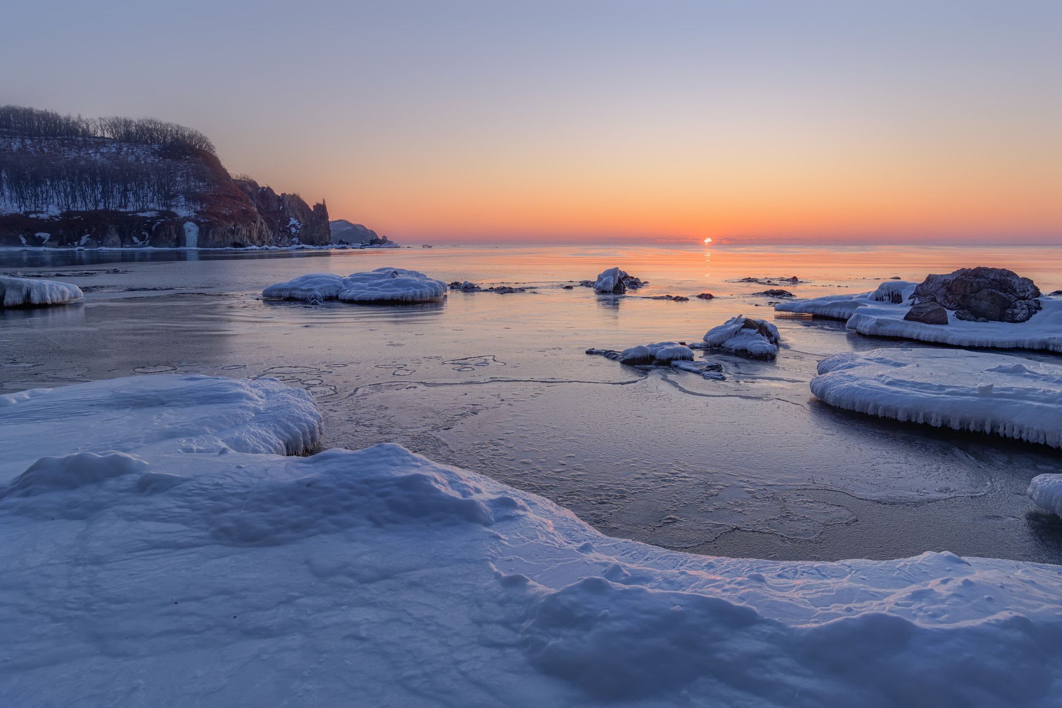 зима, утро, море, лед, 2лангоу,  GeorgyPrimoretz