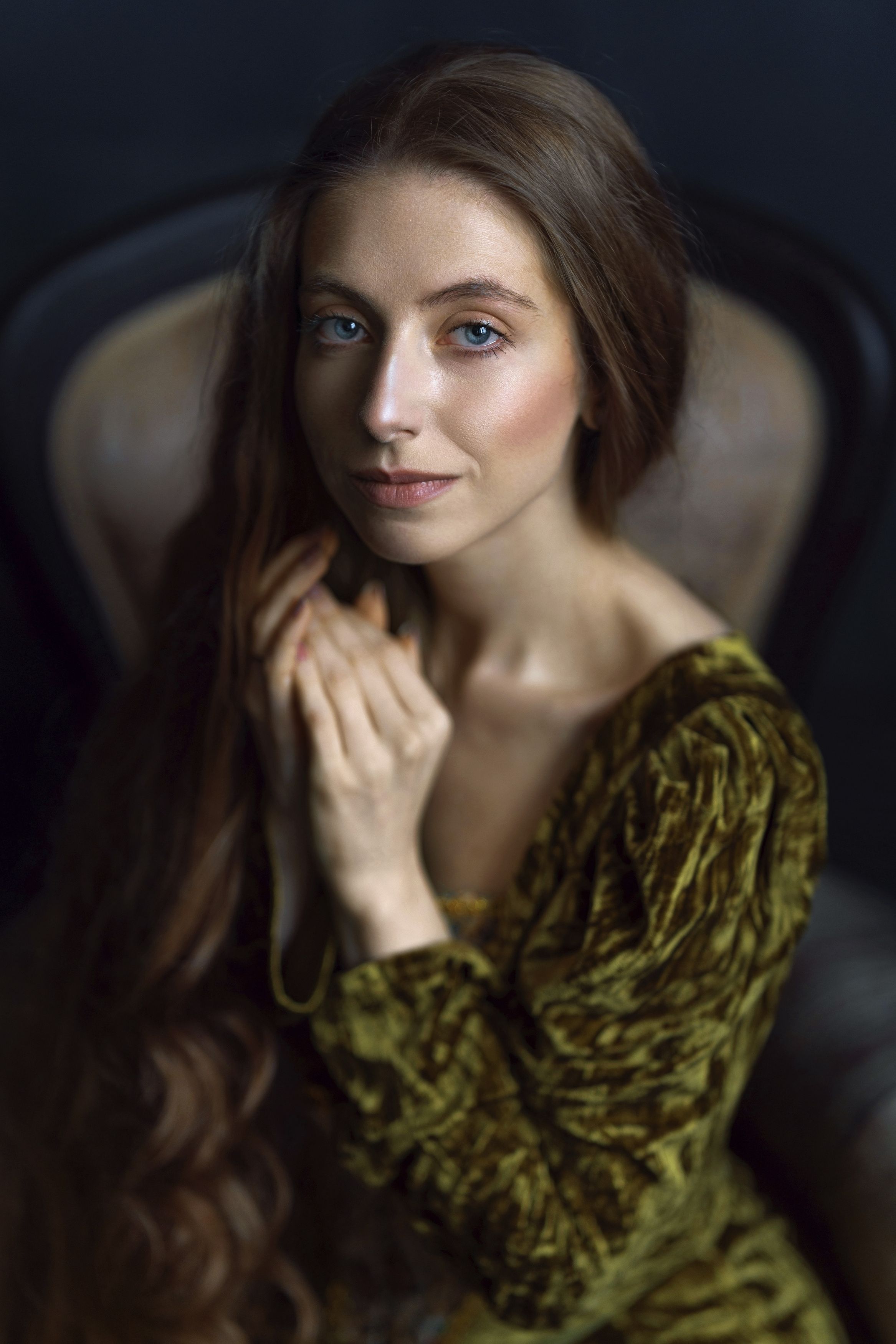 Михаил, спасибо за кадр — Анастасия выглядит очень естественно и спокойно. Зелёный бархат хорошо контрастирует с тёмным фоном, а взгляд передаёт тихую уверенность. Лёгкий намёк на историю в позе рук — удачная деталь.