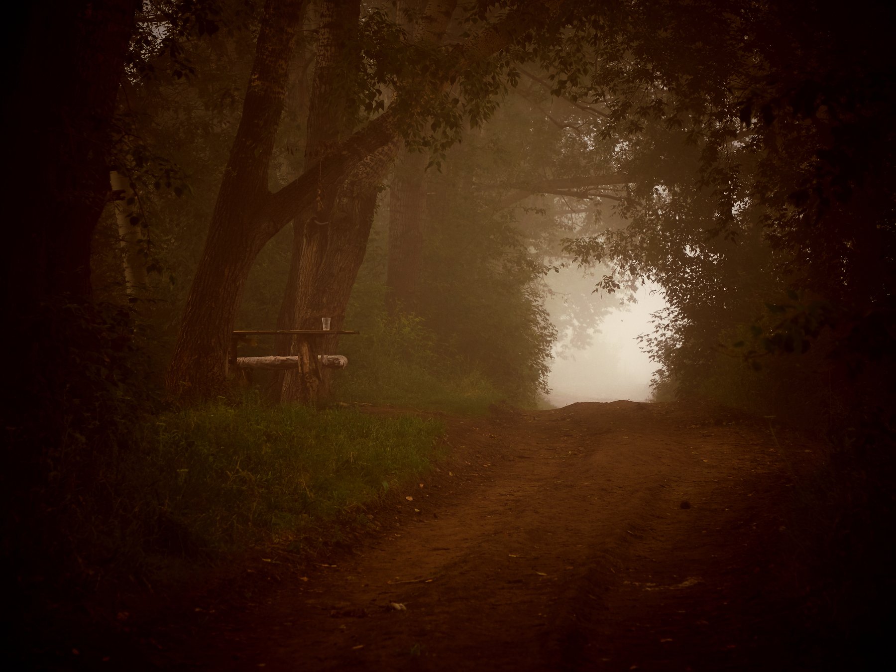 туман, лес, стол, дорога, Георгий Муравьёв