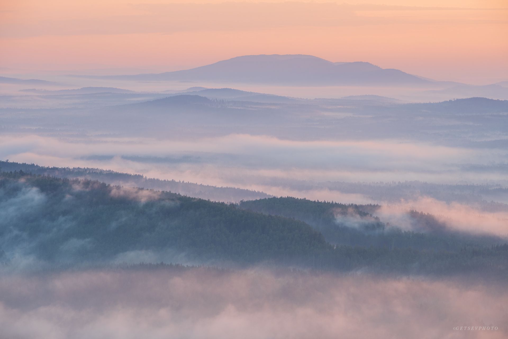горы, урал, пейзаж, туман, рассвет, Евгений Гецев