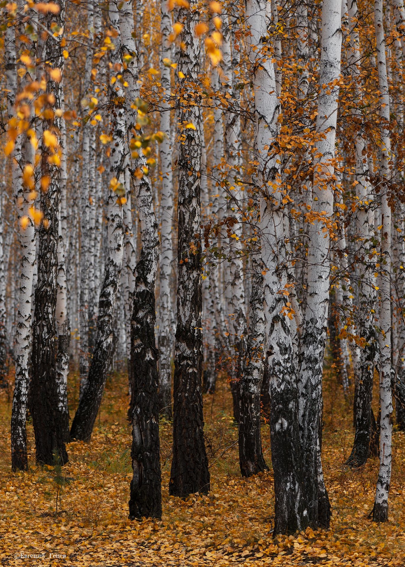 пейзаж, березы, роща, осень, Евгений Гецев