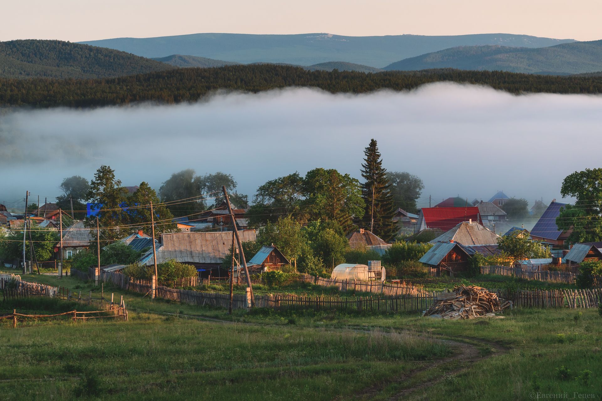 пейзаж, рассвет, лето, туман, деревня, россия, урал, Евгений Гецев