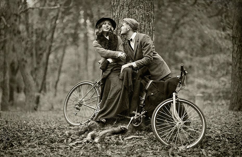 Фотография лично мне напомнила карточки начала 20-го века. (Помните "Шерлок Холмс. 20-й век начинаеся"?) А вот велосипед не вписывается в этот образ. И это обидно.