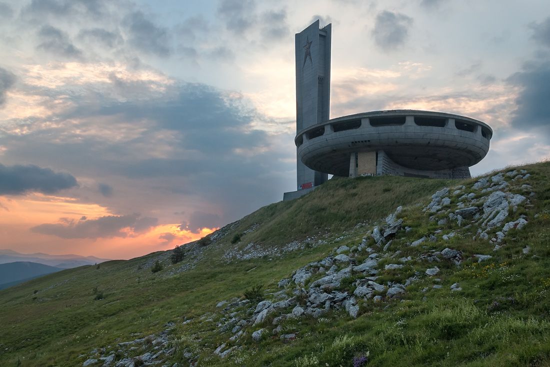 Бузлуджа – вершина в Болгарии высотой 1441 метр над уровнем моря, находится в 12 км от известного всем Шипкинского перевала. Это далеко на самая высокая точка Болгарии как гора Мусала (2925 м) Однако она имеет непосредственное отношение к коммунистической истории страны. На вершине горы располагается памятник- призрак. Это дом коммунистической партии Болгарии в виде летающей тарелки построенный в 1981 году. Строительство длилось в течении 7 лет. В постройке принимало участие около 6000 рабочих. Автором проекта был Георгий Стоилов. В оформлении интерьера учувствовали многие известные скульпторы и художники Болгарии. Стоимость проекта 14186000 лева. На сегодняшний день здание является самым крупным коммунистическим памятником в Болгарии.
