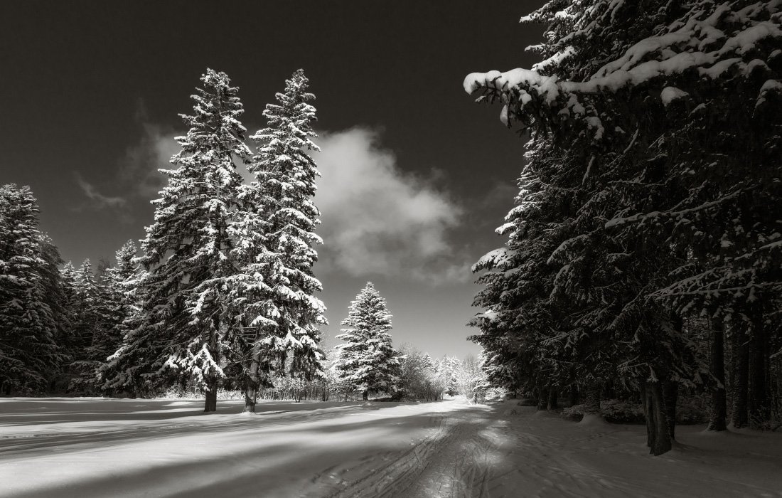 снег, елки, лес, тропинки, облака, небо, солнце, мороз, зима, Георгий Машковцев