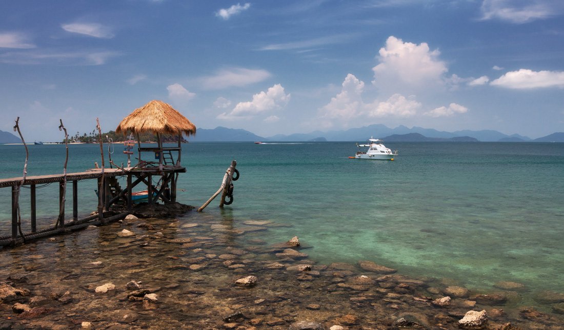 море, камни, причал, кораблик, острова, облака, краски, таиланд, Георгий Машковцев