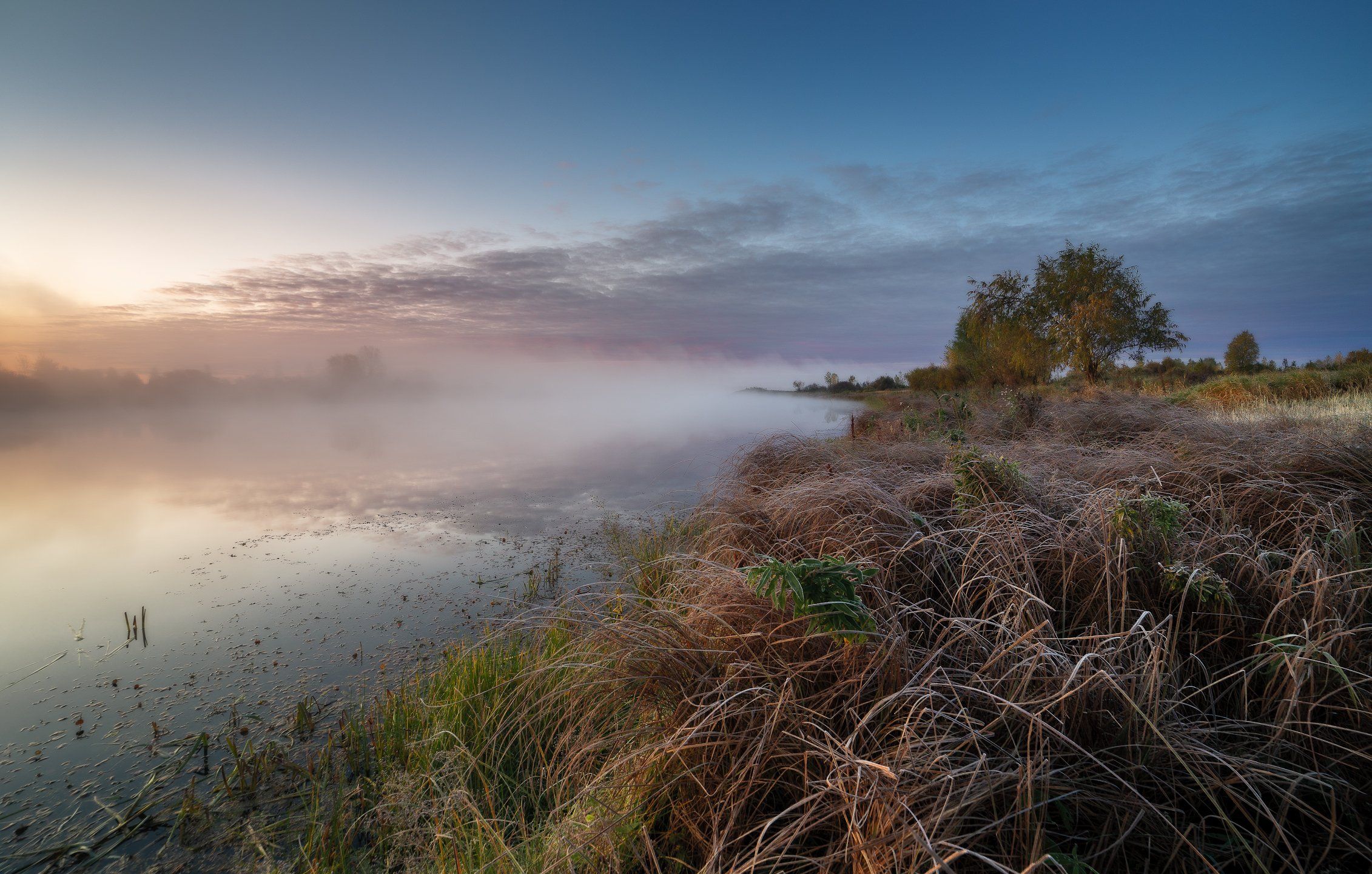 утро, туман, иней, трава, озеро,  Гобова Наталья