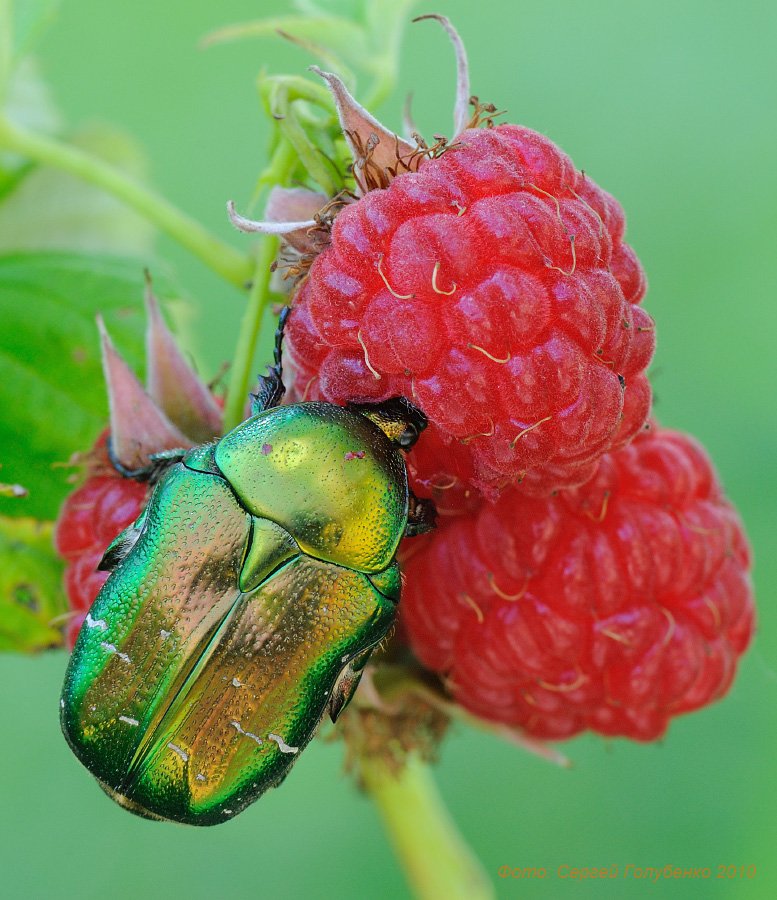 Спасибо за проявленный интерес к фото. Сам впервые увидел бронзовок на малине.Обычно они любят все цветущее:)