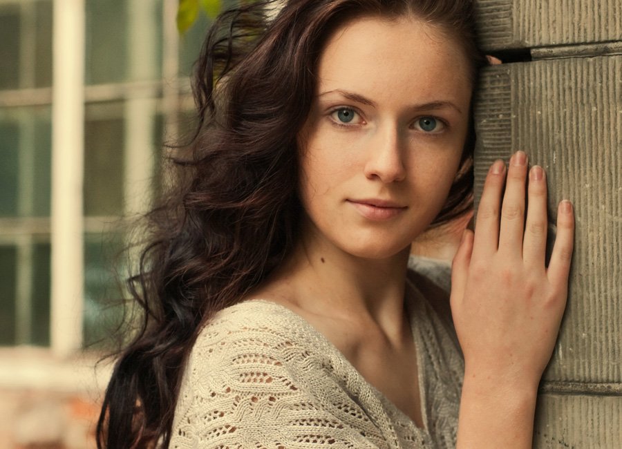 A wonderful portrait. The colours and tones suit the mood which is so dreamy and restful. What a wonderfully beautiful girl - her eyes are enchanting, such an assured poised gaze, confident and lovely. I particularly like her pose - her gorgeous hair tumbling down her shoulder, the elegant positioning of her hand - such beautiful fingers and elegant wrist. That is keyword to the shot - elegant beauty. Excellent, marvellous.