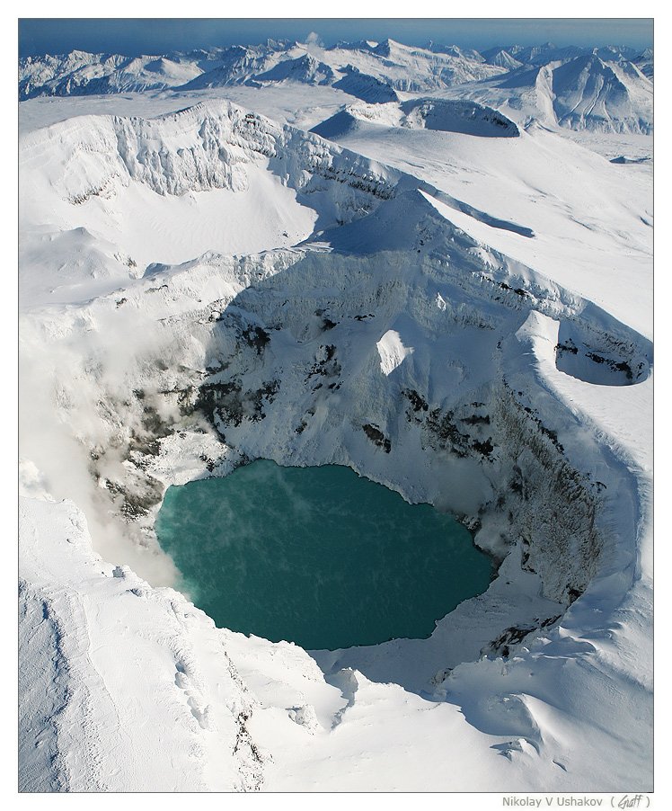 Один из наиболее активных вулканов Южной Камчатки... (излюбленное место туристов). Вулкан представляет собой сложную постройку, образованную четырьмя слившимися конусами стратовулканов. На снимке горячее озеро (кислотное) вулкана! P.s. приятного просмотра! )