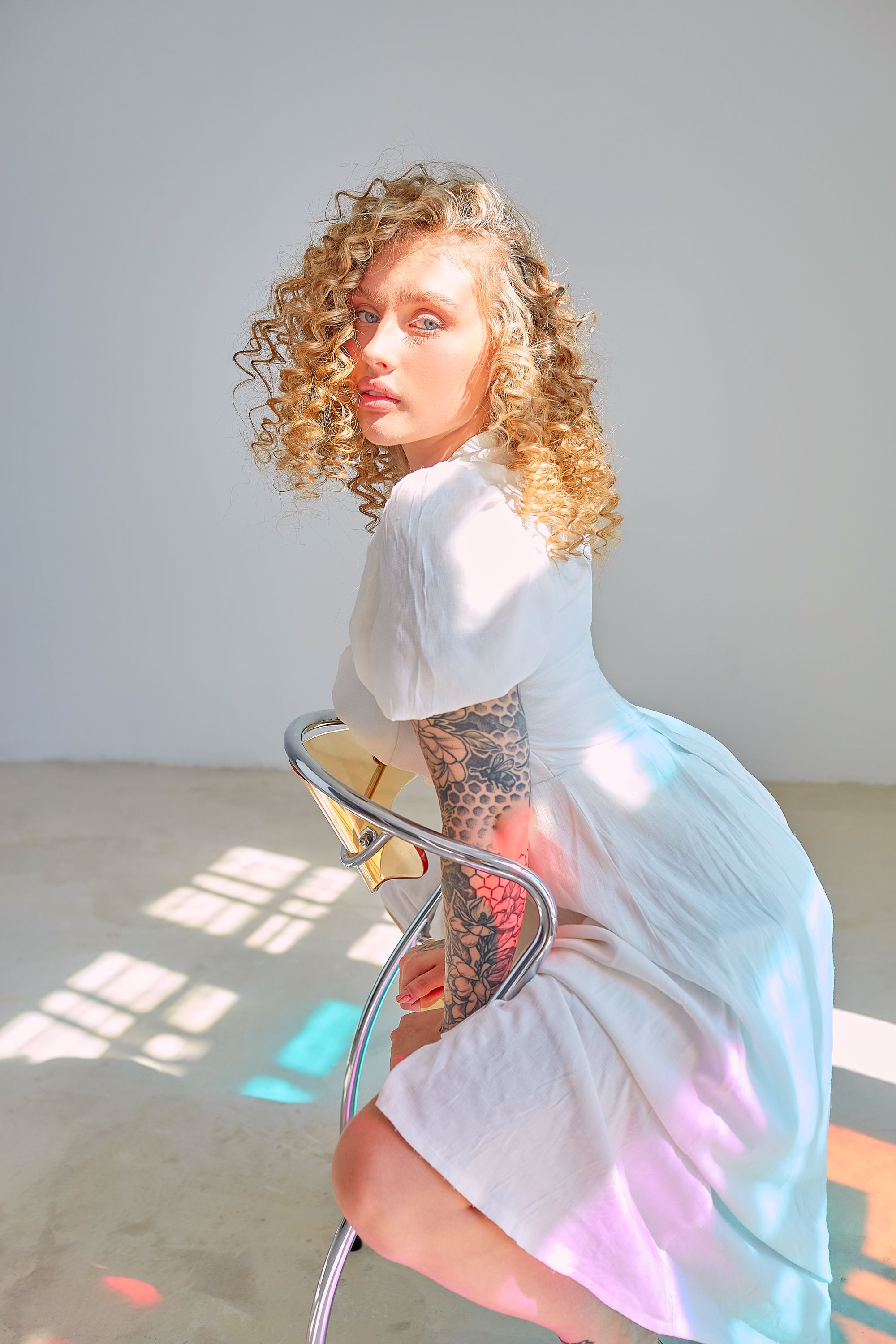 Александр, снимок получился очень свежим и светлым. Хорошо задействован свет — он играет на ткани и коже, создаёт приятные блики. Волосы и тату смотрятся динамично, поза — естественно, почти непринуждённо. Цвета мягкие, но в меру насыщенные, особенно в тени — там интересные оттенки. Стул добавляет немного графики, не перегружает. В целом — удачный кадр, с хорошим чувством композиции.