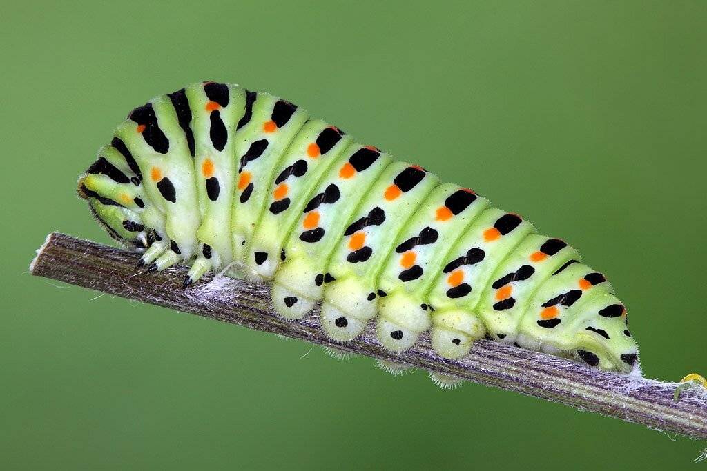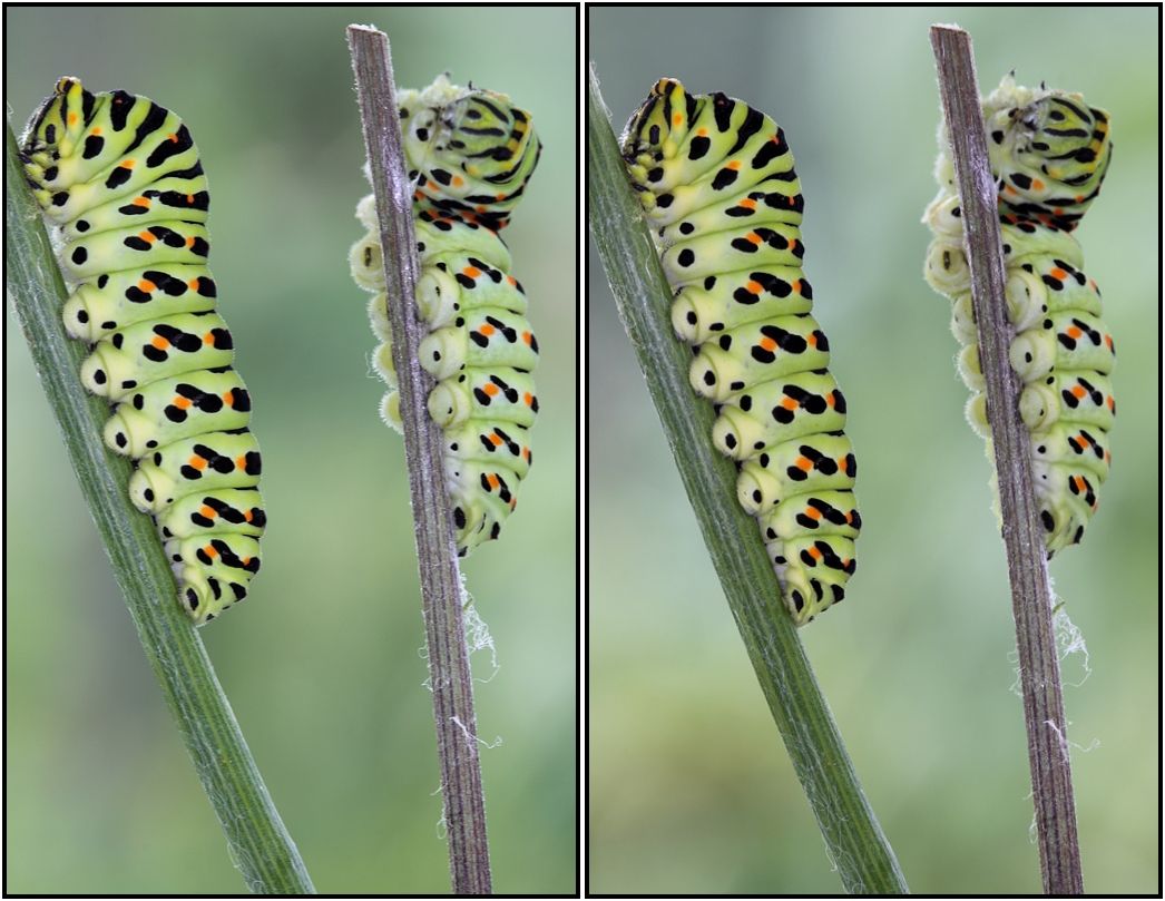 Окукливание гусеницы махаона первая стадия. Ей необходимо надеть шёлковую петлю на туловище, которая будет крепить будущую куколку к субстрату.