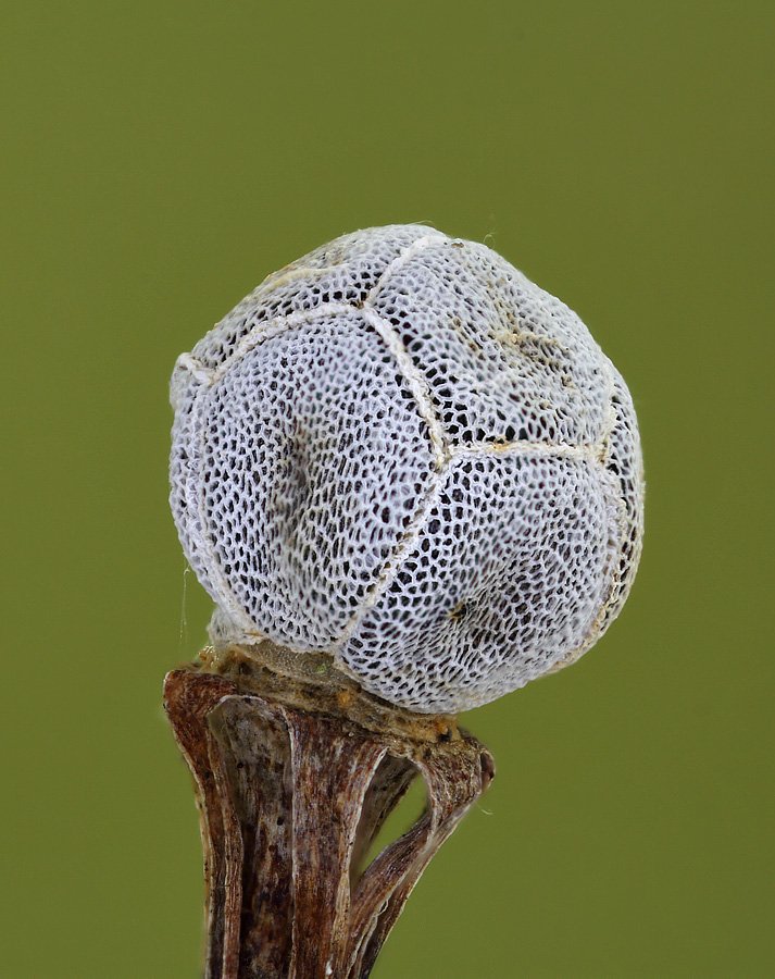 Это плодик растения Седмичник европейский. Растет в лесу, весьма редок по крайней мере у нас. Мячик чуть поболее макового зернышка пришлось снимать мощным макрообъективом MP-E 65.