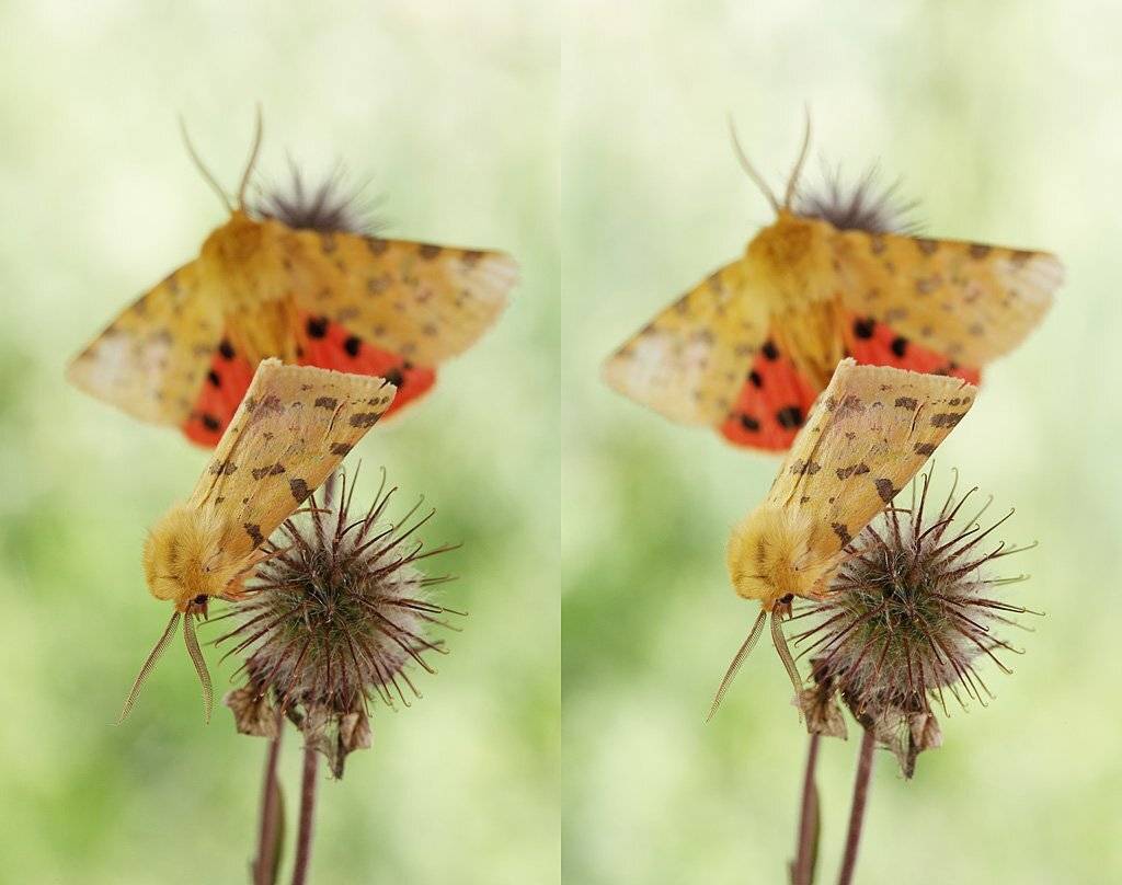 Принцип просмотра очень прост - на левую часть смотрим правым глазом, на правую левым. Если у кого то не получается смотрите курс по просмотру http://macroclub.ru/how/stereo