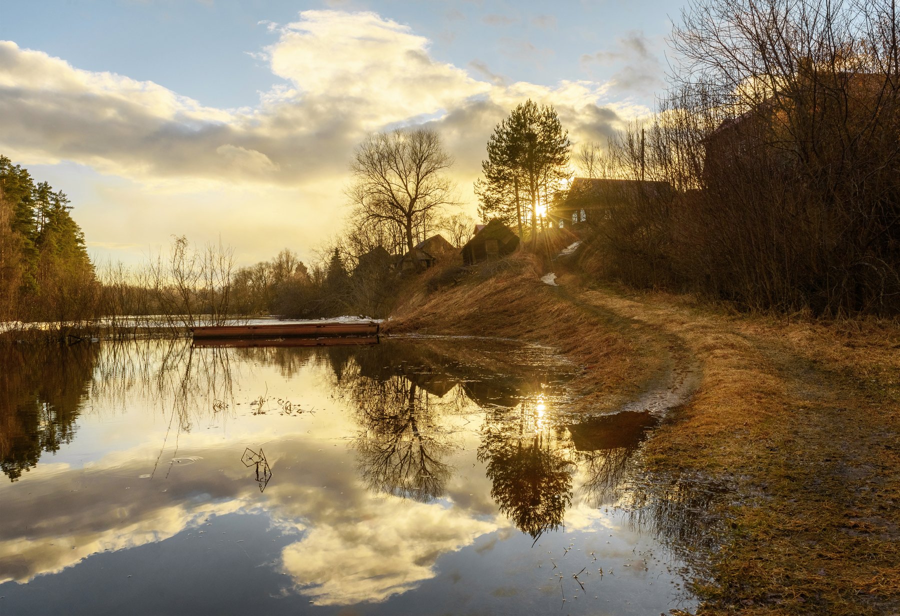 закат, весна, пейзаж, разлив, глубинка, деревня, взвоз, Андрей Грибов
