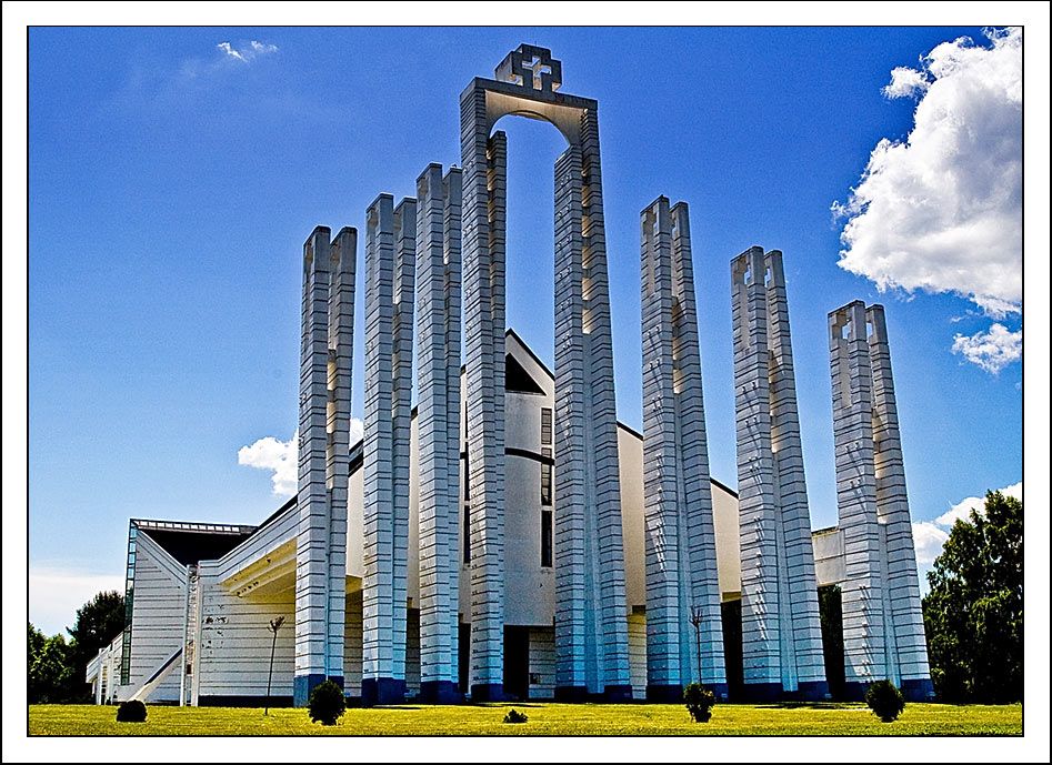 Строение действительно интерестное. А комментарий - название этого костёла на литовском языке.