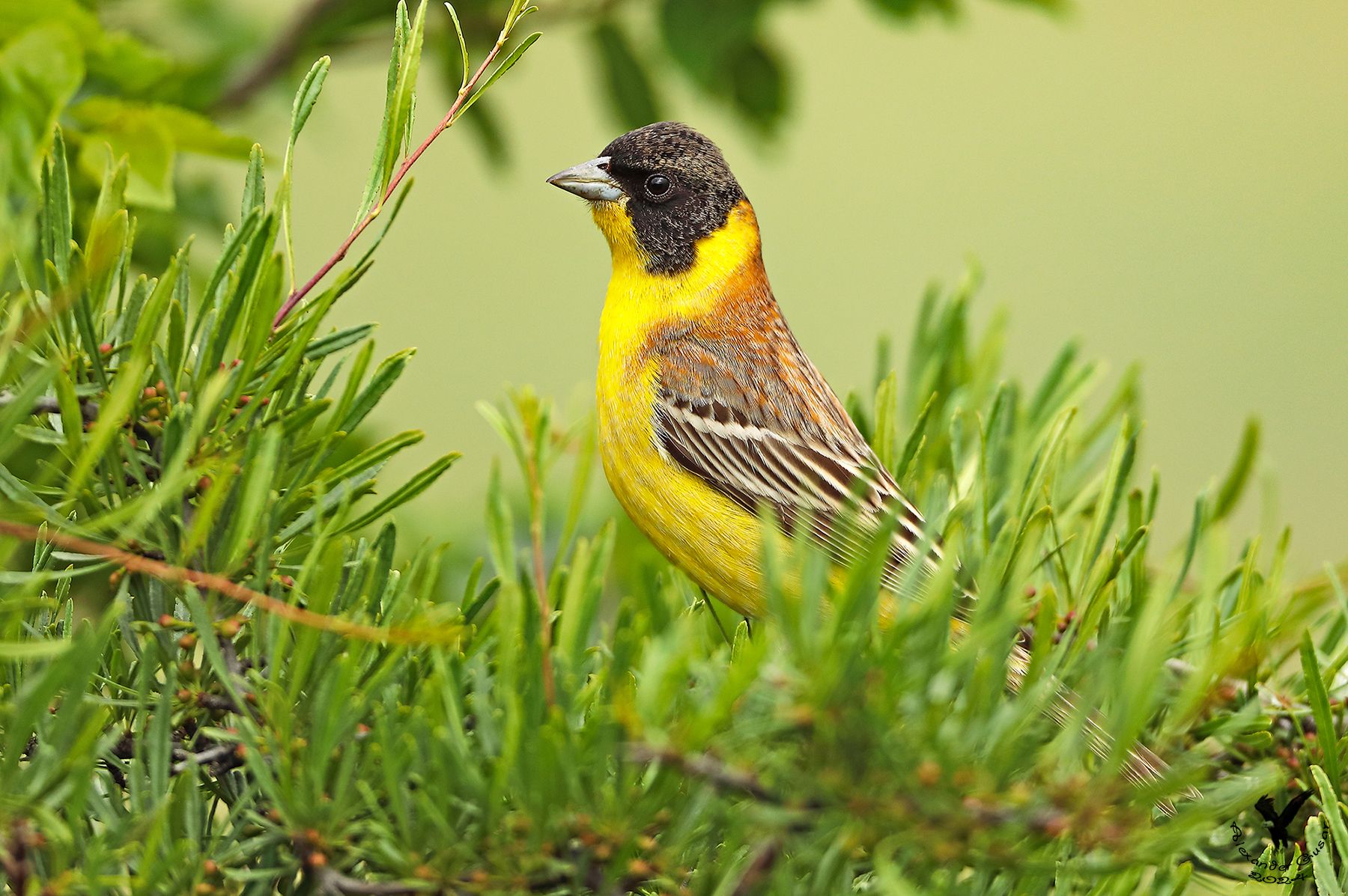 Крупная, относительно длиннокрылая и длиннохвостая овсянка с несколько вытянутым корпусом и короткими сильными ногами. Длина тела 16–20 см, масса 29–33 г, размах крыльев 28–30 см. Клюв крупный, удлинённый, с прямым коньком надклювья, щель между надклювьем и подклювьем почти не выражена. Держится открыто, самцы видны издалека, самки и молодые птицы малозаметны из-за тусклой окраски.
