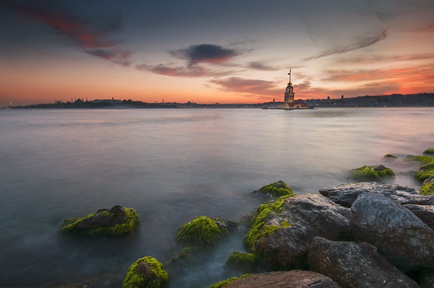 Существует несколько версий строительства башни. По одной версии Девичью башню построил афинский полководец Алкивиад для контроля над пришествием персидских кораблей в Босфорский пролив. По другой — башня была построена во время правления императора Константина Великого в качестве сторожевой вышки.