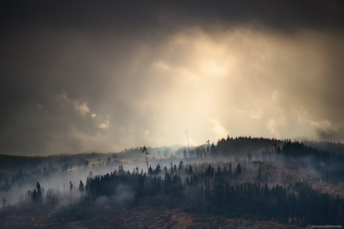 но как-то страшно, темная земля и туман над лесом создают впечатление лесного пожара...