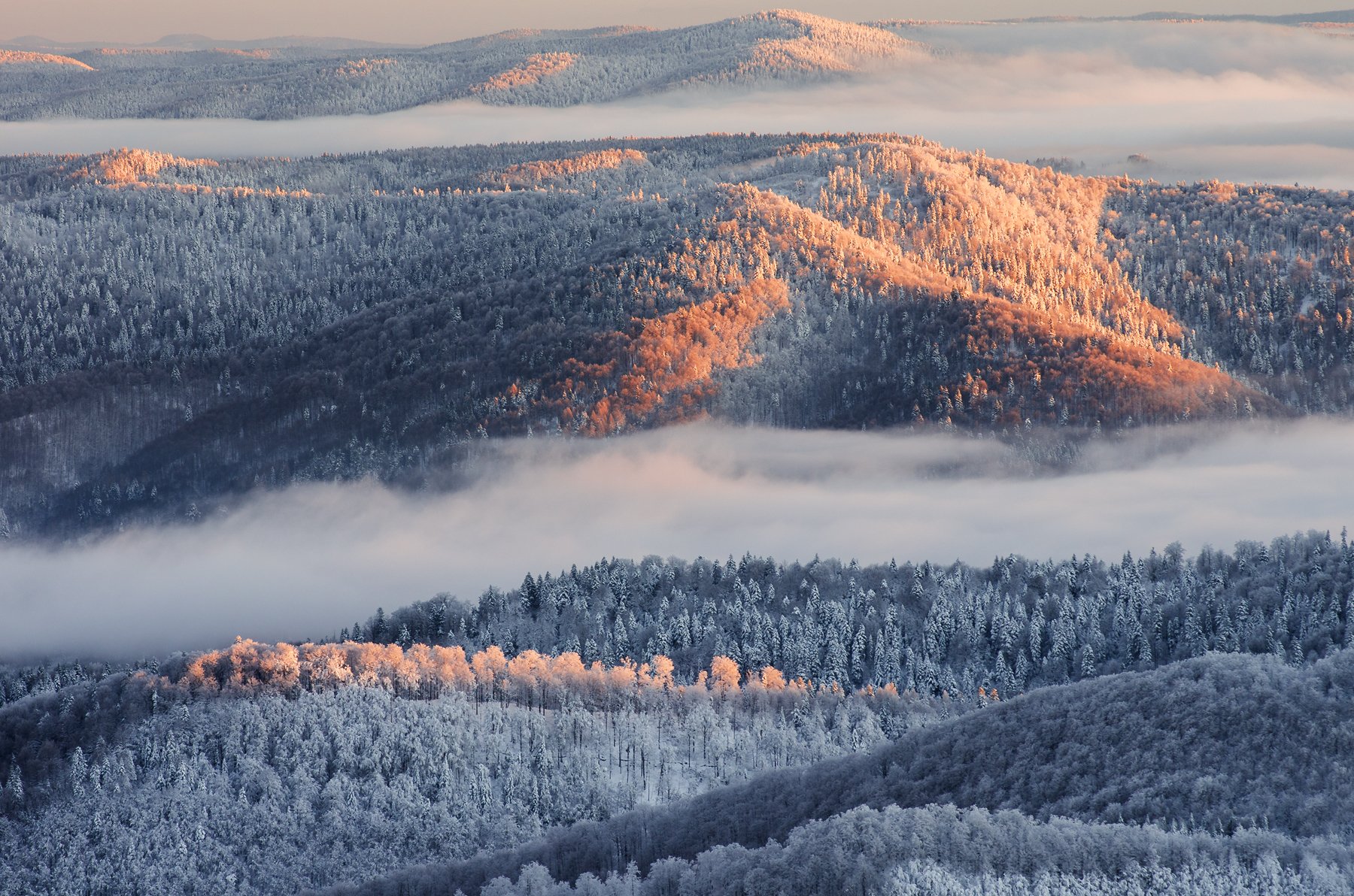 Bieszczady, winter, snow, National, Park, Poland, mountais, forest, fog,  Mirek Pruchnicki