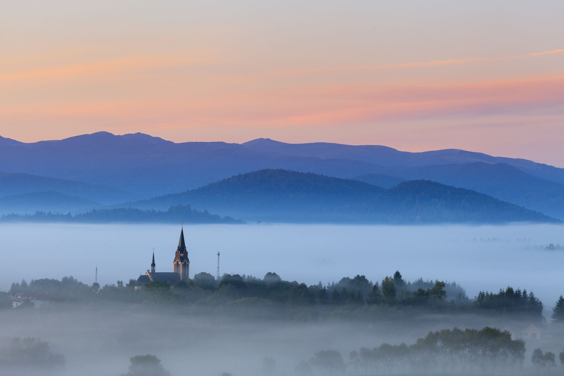 bieszczady, mountains, autumn, foggy, fog, misty, morning, lutowiska, church,  Mirosław Pruchnicki