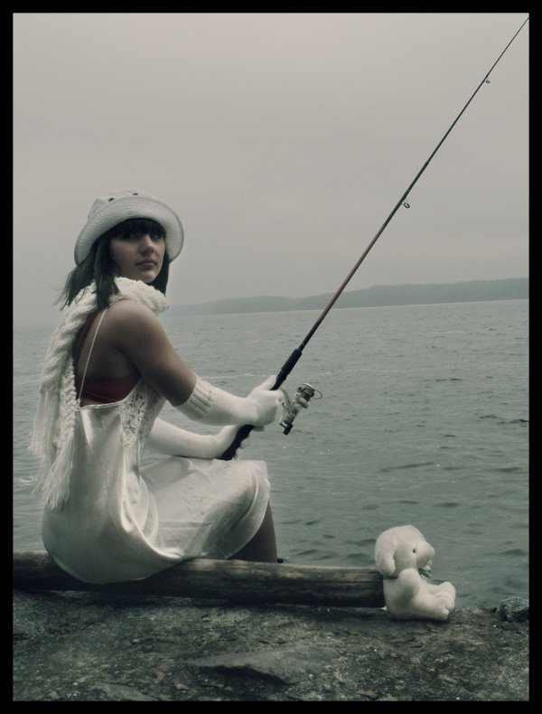 Гламурная рыбачка)) А я дурак, рыбу ловил не в парадном костюме и без галстука))