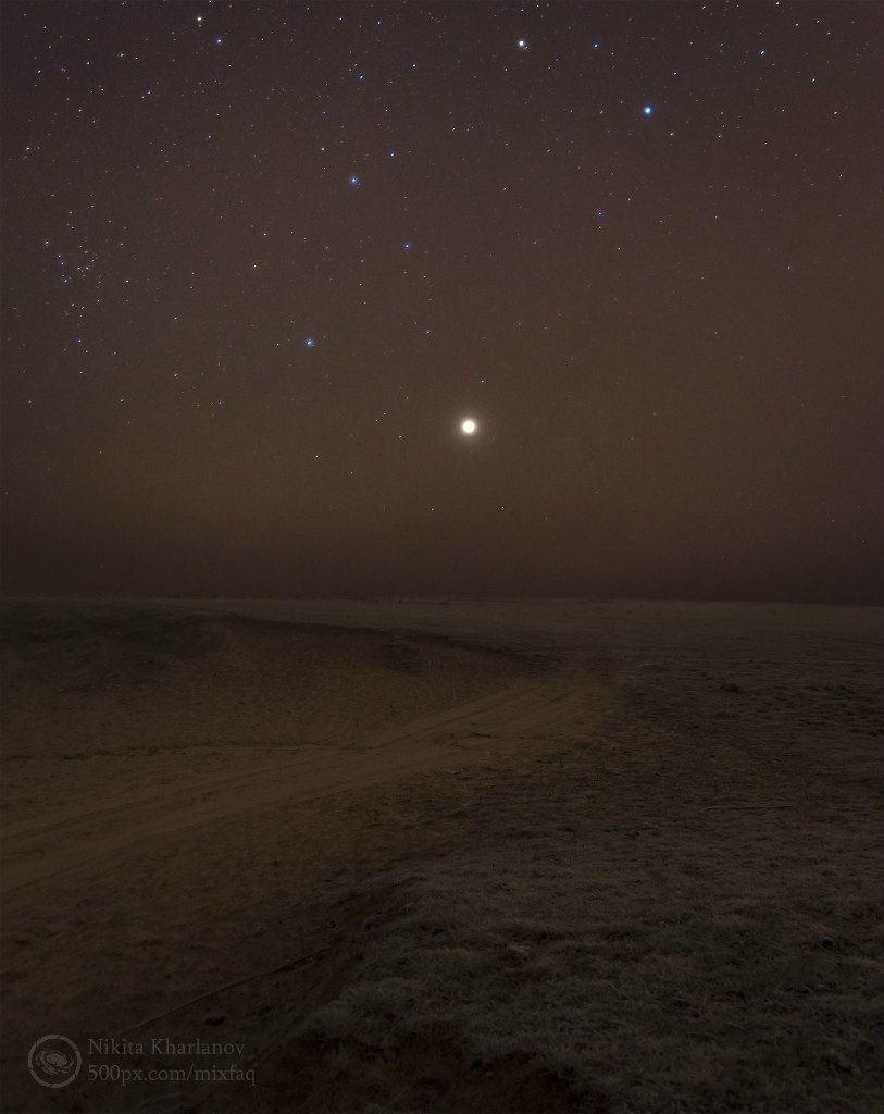 астрофото, астрономия, ночное небо, звездное небо. небо, юпитер, звезды, планета, песок, пляж, природа, ночь, туман, туманное небо, дымка, дорога, трава, Харланов Никита