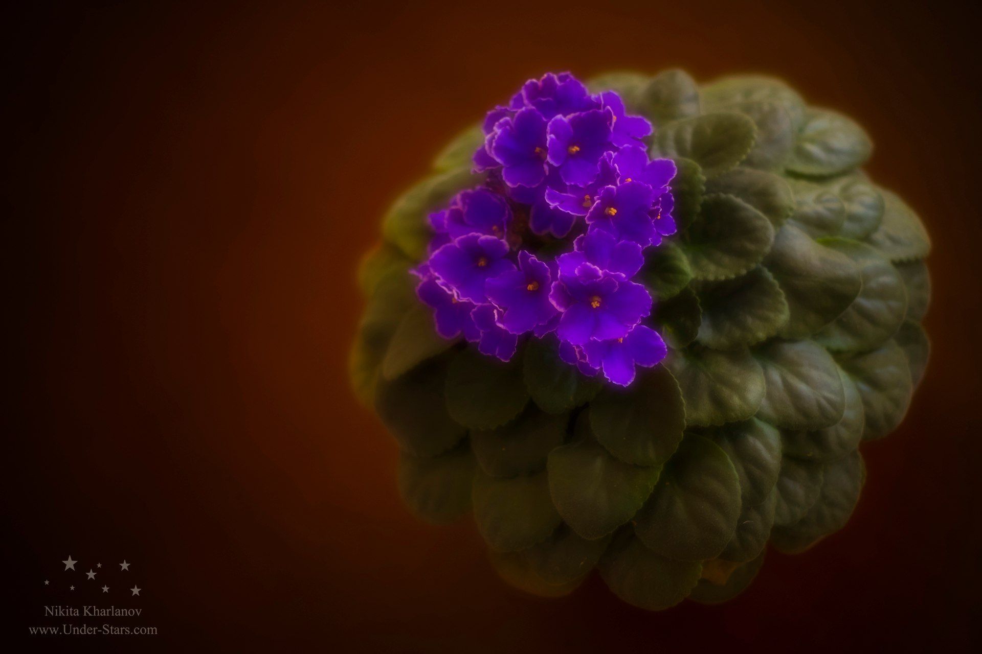 фиалка, цветок, цвет, фиолетовый, листья, зеленый, коричневый, Харланов Никита