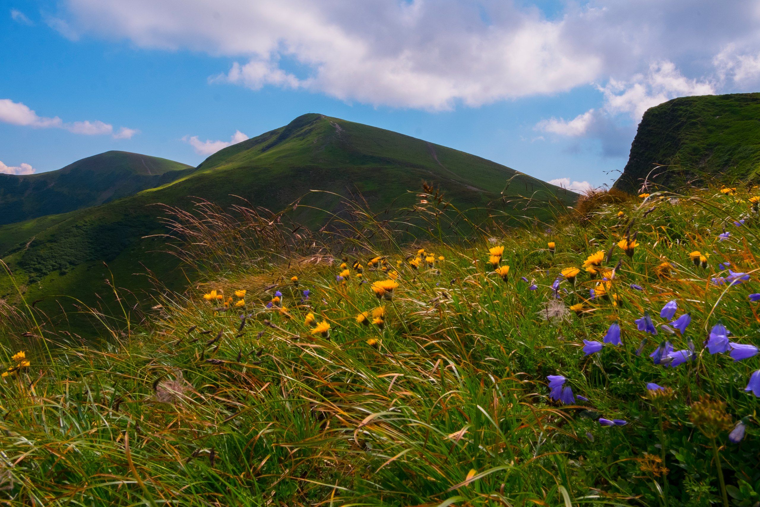 цветы, колокольчики, драгобрат, карпаты, горы, холмы, склоны, облака, природа, небо., Харланов Никита