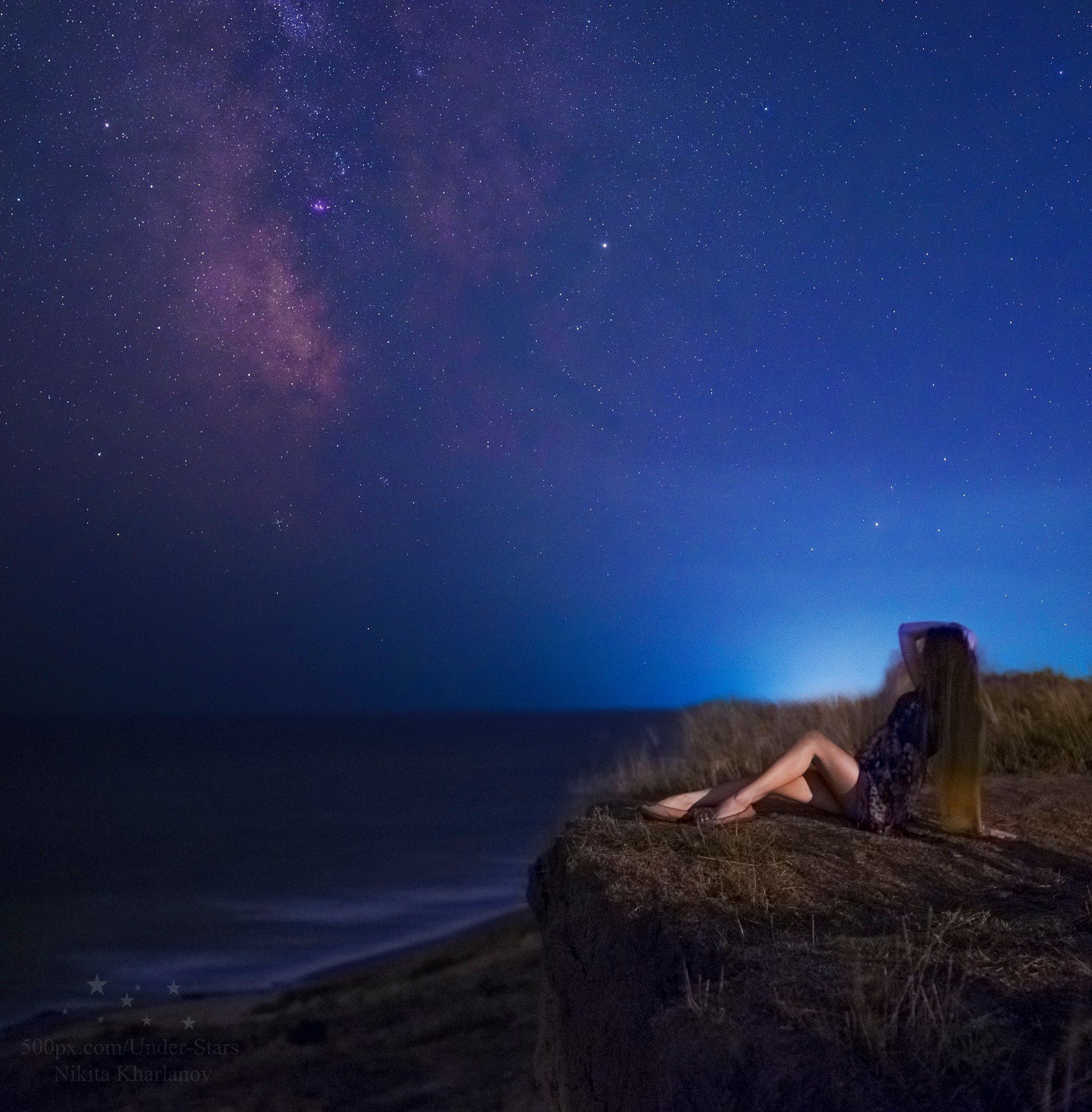 Млечный Путь, звезды, девушка, девушка под звездами, звезды, ночь, ночной пейзаж, ночная фотография, астрофото, астрофотография, небо, Харланов Никита