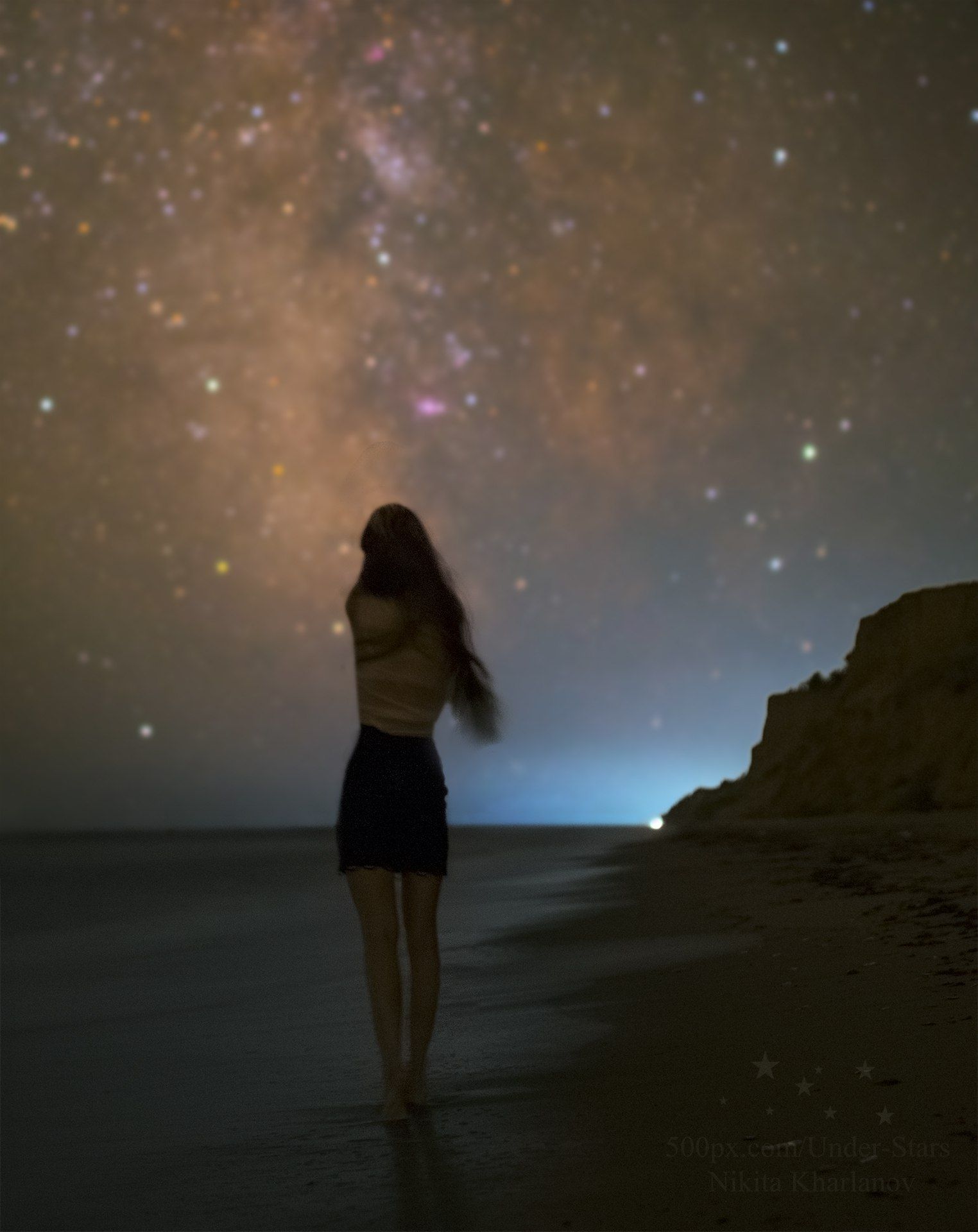 Млечный Путь, звезды, астрофотография, астрофото, ночь, ночной пейзаж, ночное фото, пейзаж, побережье, море, девушка, пляж, Харланов Никита