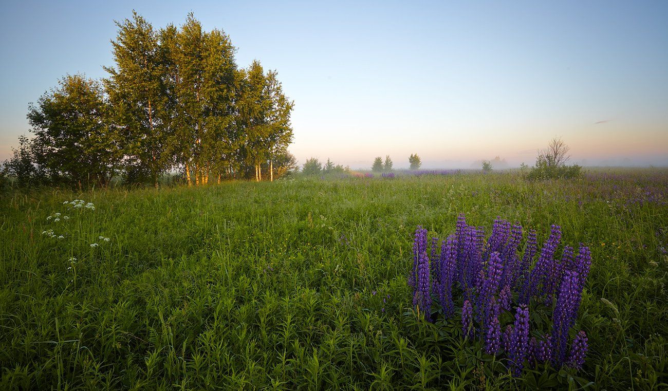 :-) нет,Гелена,дымка тут совсем не "лёгкая" - в районе розовой полоски(подсветка восходящим солнцем,это где-то километра полтора от точки съёмки) стена леса,и она еле угадывается синей полоской!..