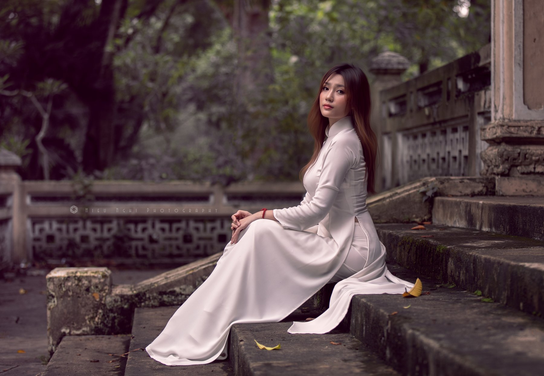 ao dai, long dress, charming, pagoda, traditional, sad, HIEU NGHI NGUYEN
