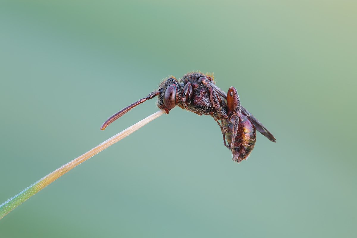 я кстати тоже снял такой экземпляр :)... видно этот вид любит спать на кончике травы, держась только челюстями :).