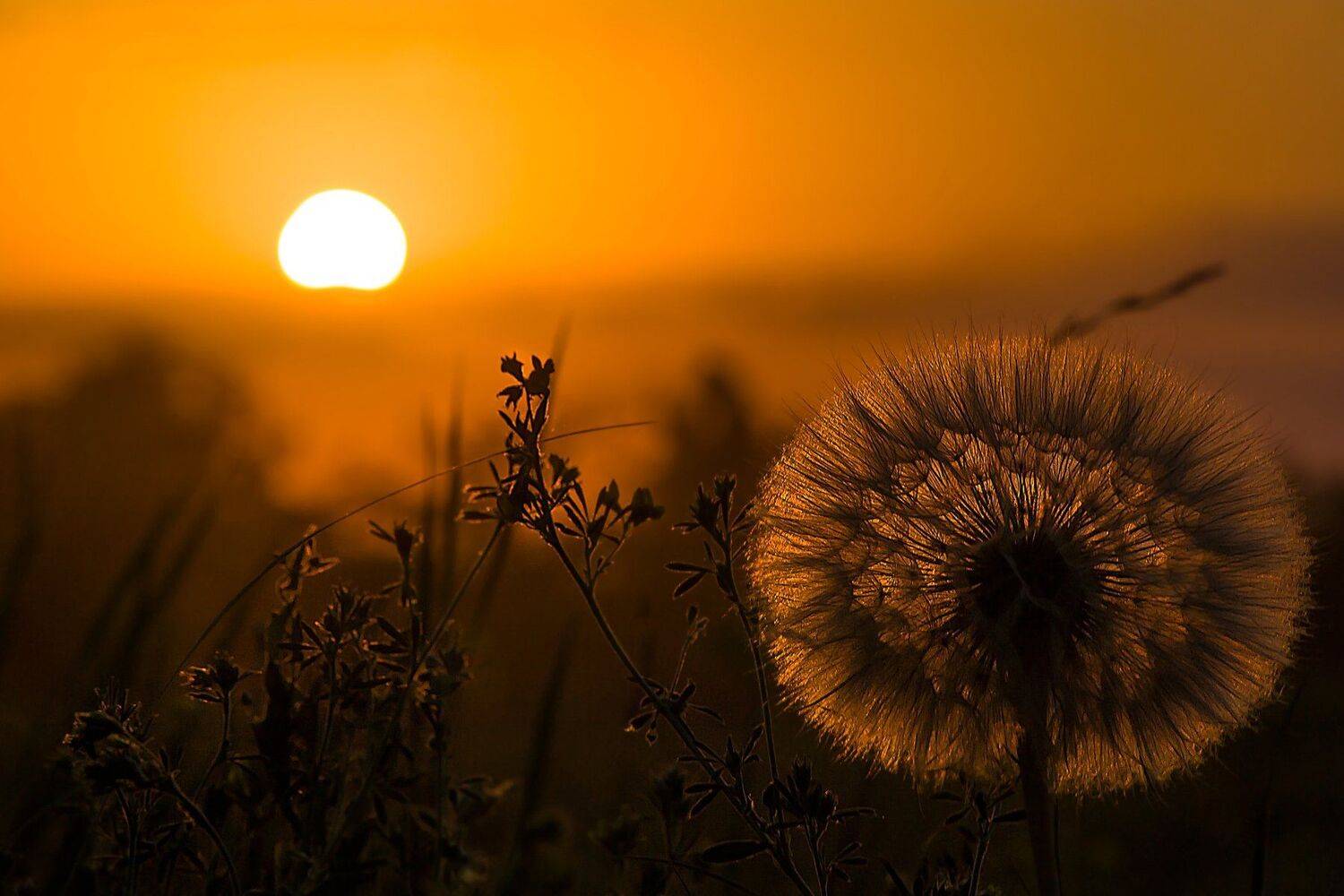 Одуванчик в свете заходящего солнца.