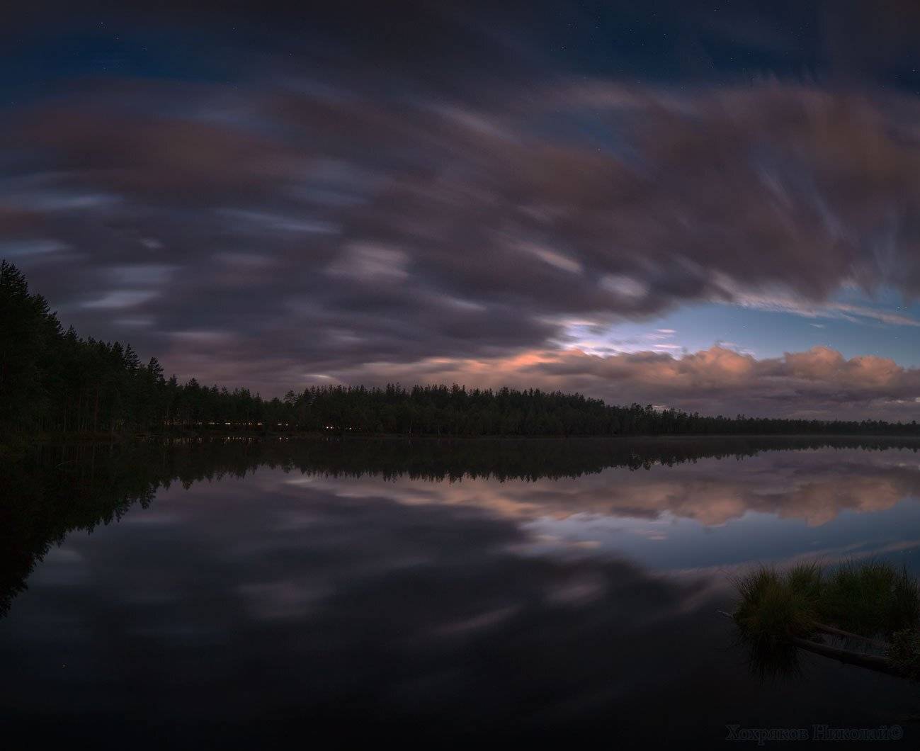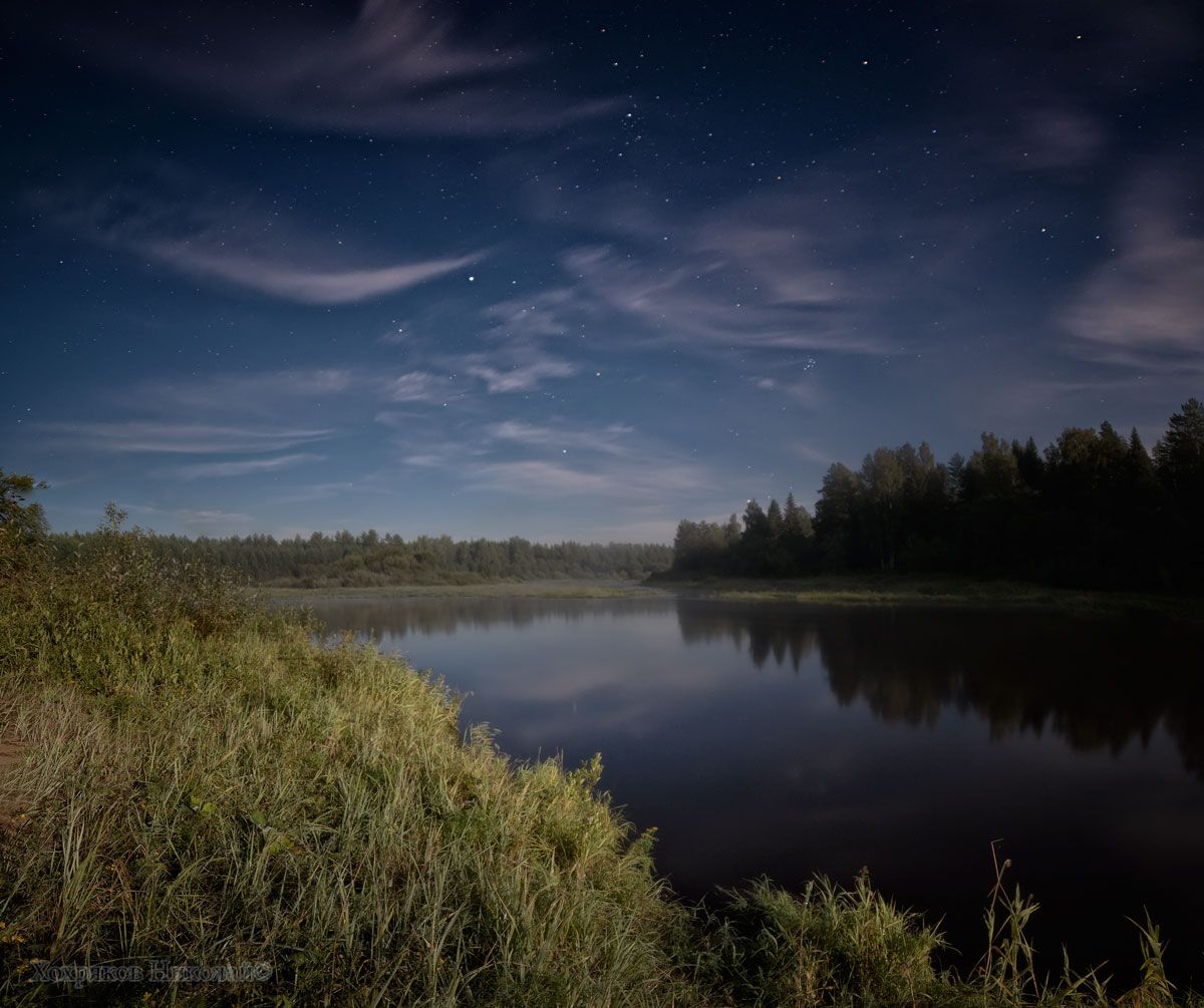 давно хотел снять движение ночных облаков, но как обычно - не сходилось...а тут луна и ветерок...луна позволила снимать почти без шума, а ветер придал необходимое движение...в общем, опять немного везения:)