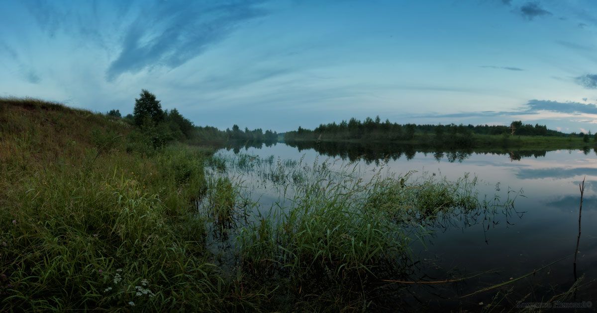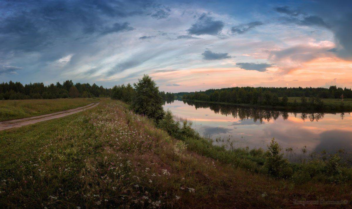 после многочисленных ливней полевые и береговые дороги оказались непроезжими...пришлось остаться на одном месте у поклонного креста до ночи...сидя на обрыве, попивал чаёк, отмахивался от комаров и смотрел, как облака меняют краски...и вот что из этого получилось:)