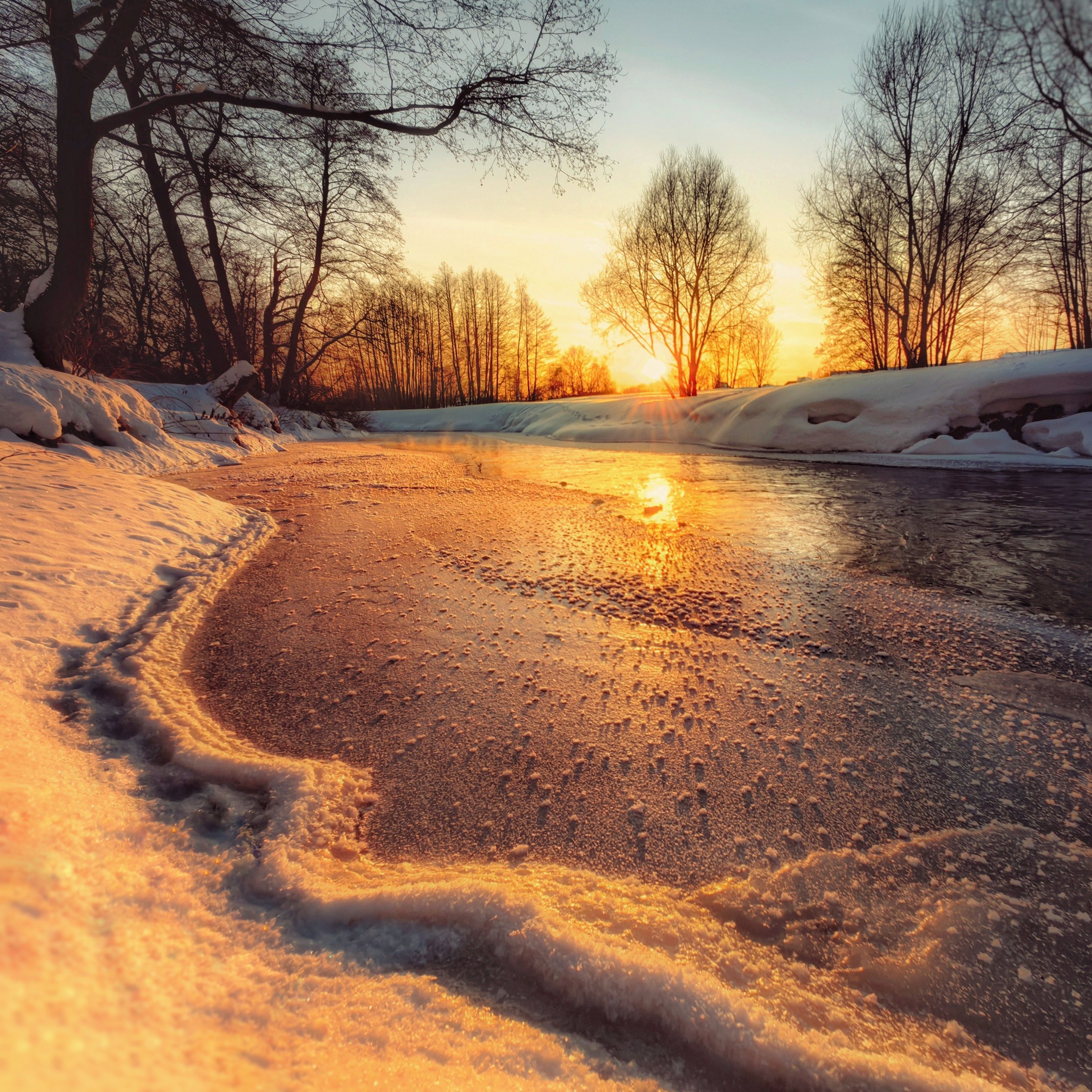 зима, пейзаж, закат, река, природа, Хомастя Настя