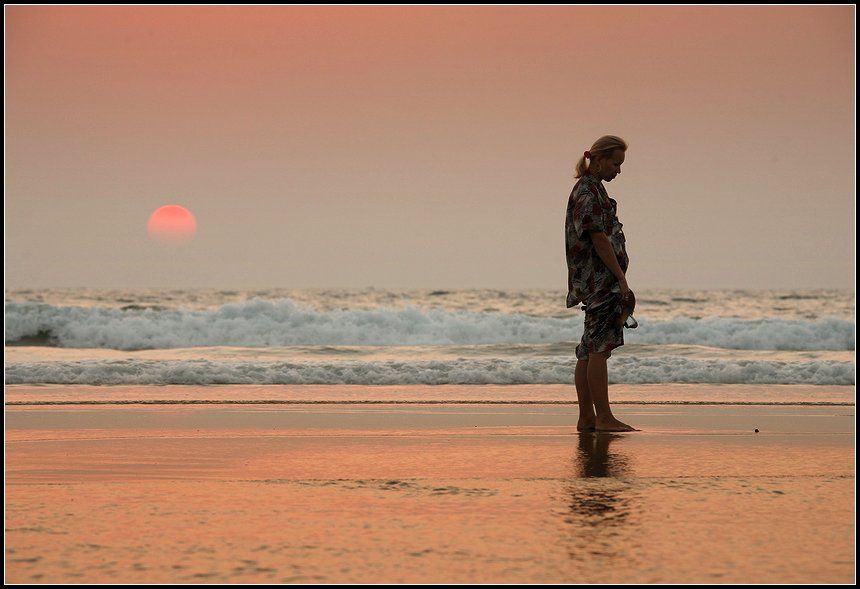 Не знаю. Кадр не постановочный. Просто человек и море на исходе дня. Мне он понравился. А может человек обиделся на солнце, за то, что оно покидает его и отвернулся в печали:) Спасибо Евгений:)