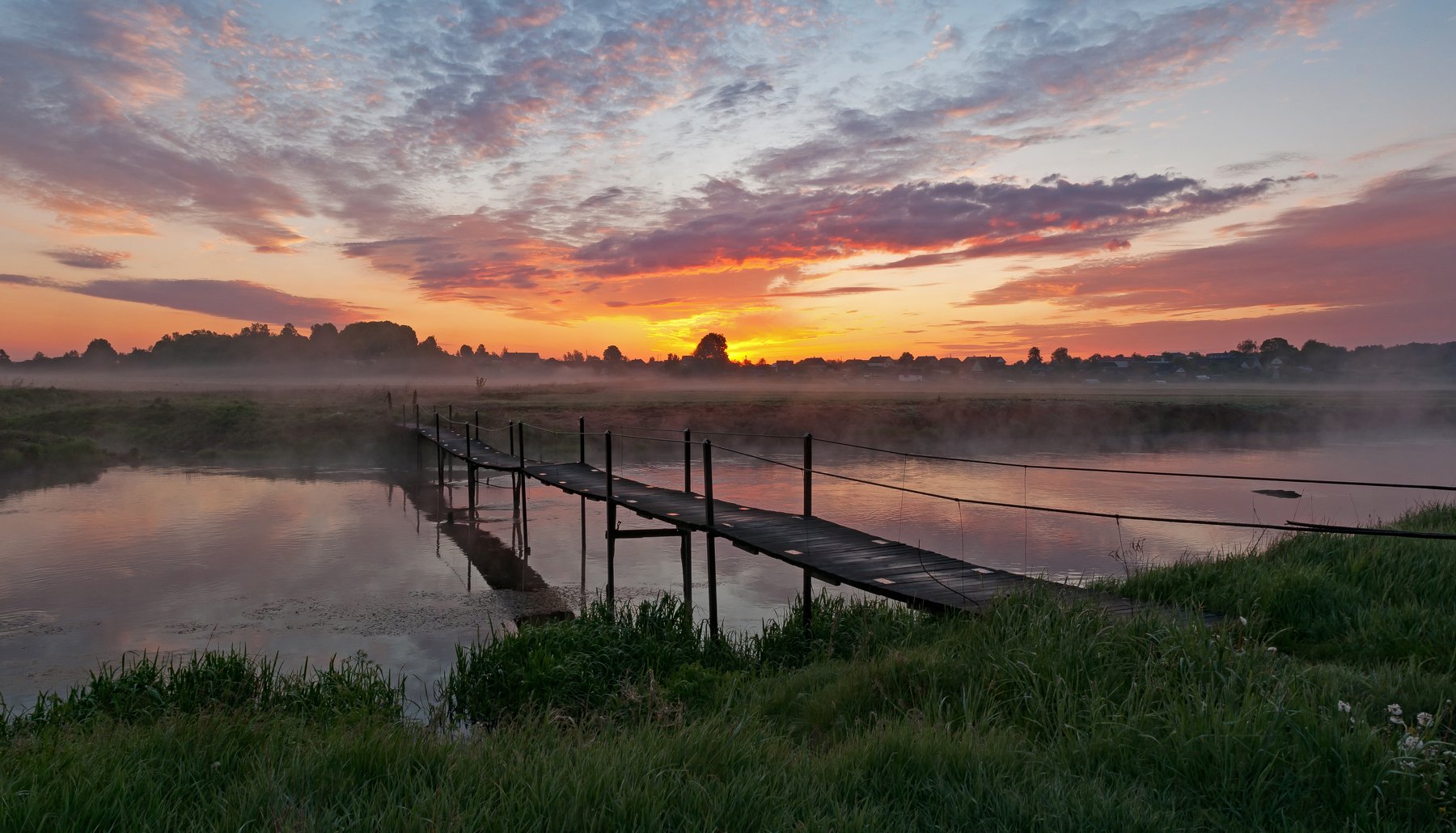 утро, свислочь, туман, мостик, пейзаж, Александр Гвоздь