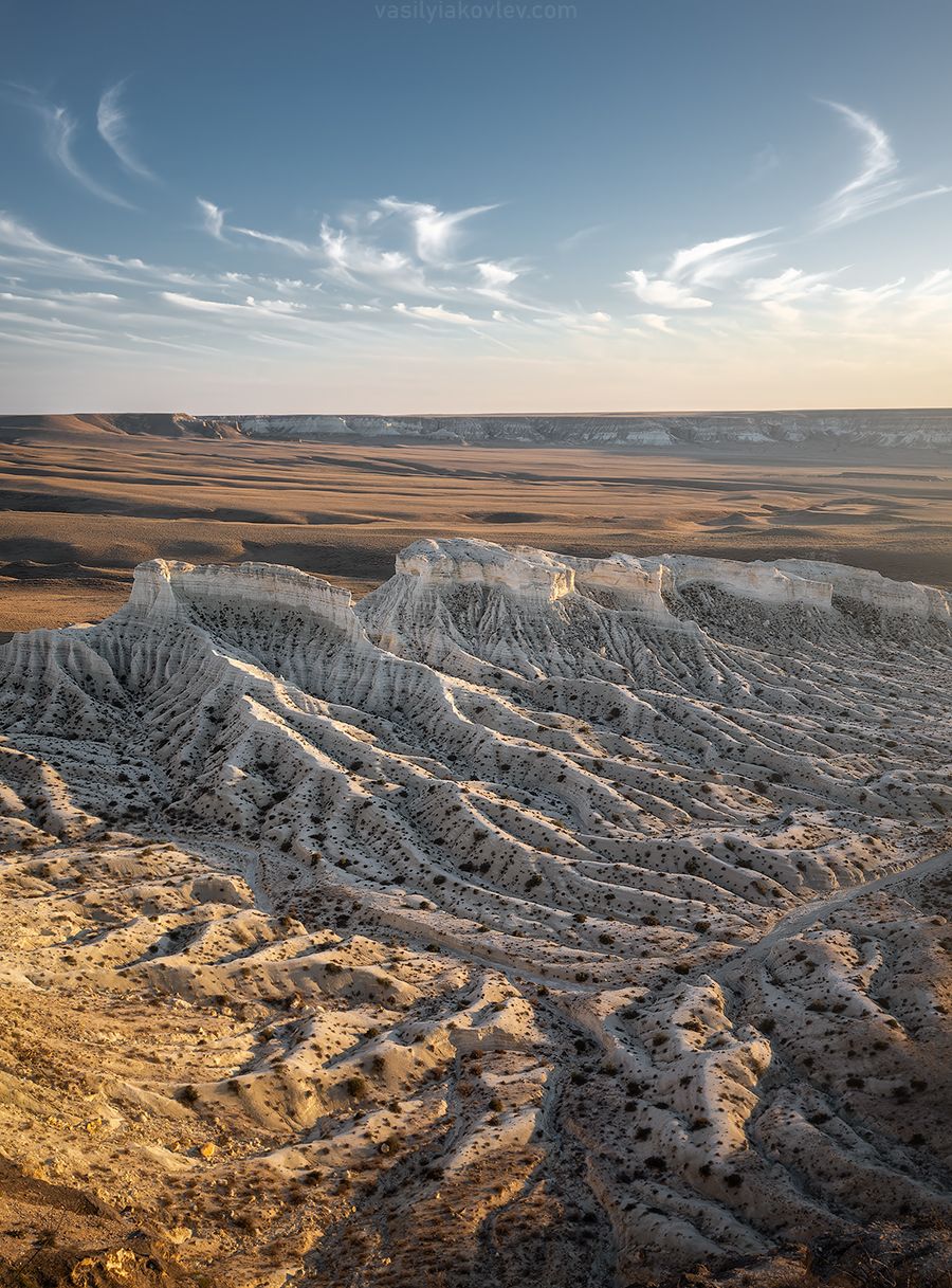 В осеннем фототуре по Мангистау в первый день мы планировали переночевать на новой локации. Не без моих штурманских советов мы, в итоге, поехали не по той дороге, заблудились и поняли, что доехать до намеченной точки к закату уже не успеваем. Предварительный осмотр окрестностей показал, что случайно найденное место имеет хороший фотопотенциал. В итоге все сложилось как нельзя лучше. Мы нашли классную закатную и не менее удачную рассветную точки. А ночью было отличное звездное небо.