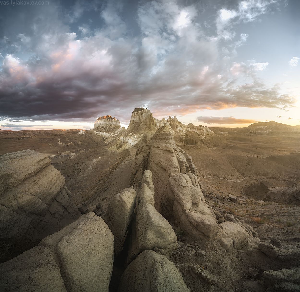 Вечер в Долине замков Айракты, Мангистау, Казахстан.