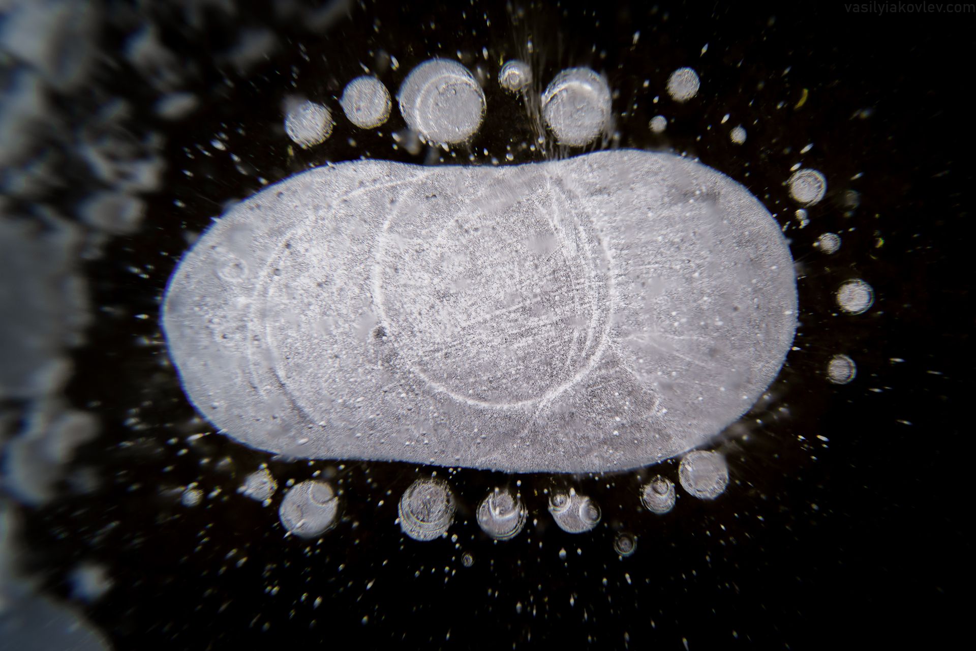 Уже почти месяц не было снега, но в этом есть свой плюс - на уральских озерах сейчас потрясающий зеркальный лед. А во льду иногда попадаются замерзшие пузыри, прямо как на Байкале. Вчера съездил на ближайший водоем, а там такая красота! Лед на водоеме образовался гладкий, пока довольно тонкий, оттого особенно прозрачный. Пока я фотографировал, пошел легкий снег, и крупные снежки красиво ложились сверху на лед, оказавшись весьма кстати.