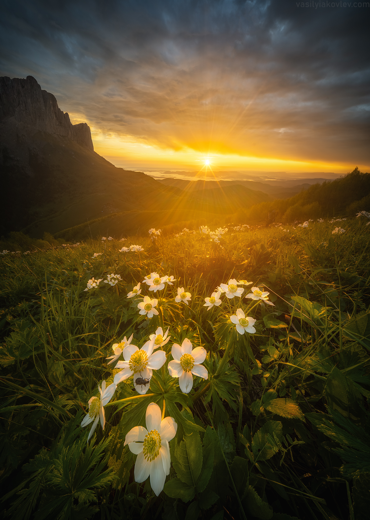 В июне на Кавказе погода обычно переменчивая. Часто бывают дожди и грозы, но именно они дают надежду на самый красивый свет, который обычно бывает в моменты смены погоды, когда гроза только закончилась или, наоборот, надвигается. Остается только надеть дождевик и быть наготове с фотоаппаратом на съемочной точке.