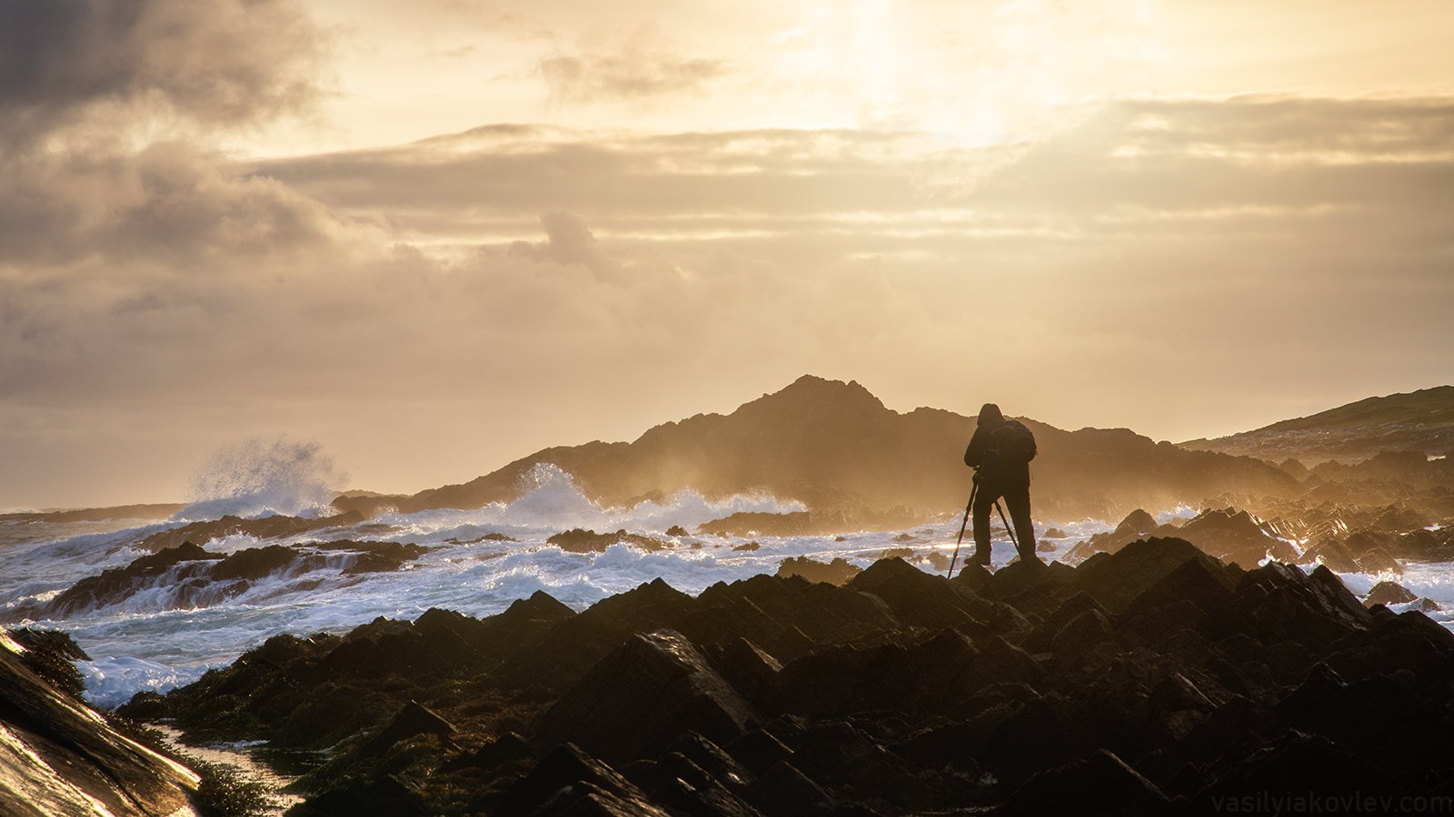 Через мгновение после того, как я сделал этот снимок, меня смыло мощной волной, каким-то чудом я умудрился поймать камеру со штативом, и сам не пострадал при этом. Если не считать того, что вода в Баренцевом море очень бодрит.