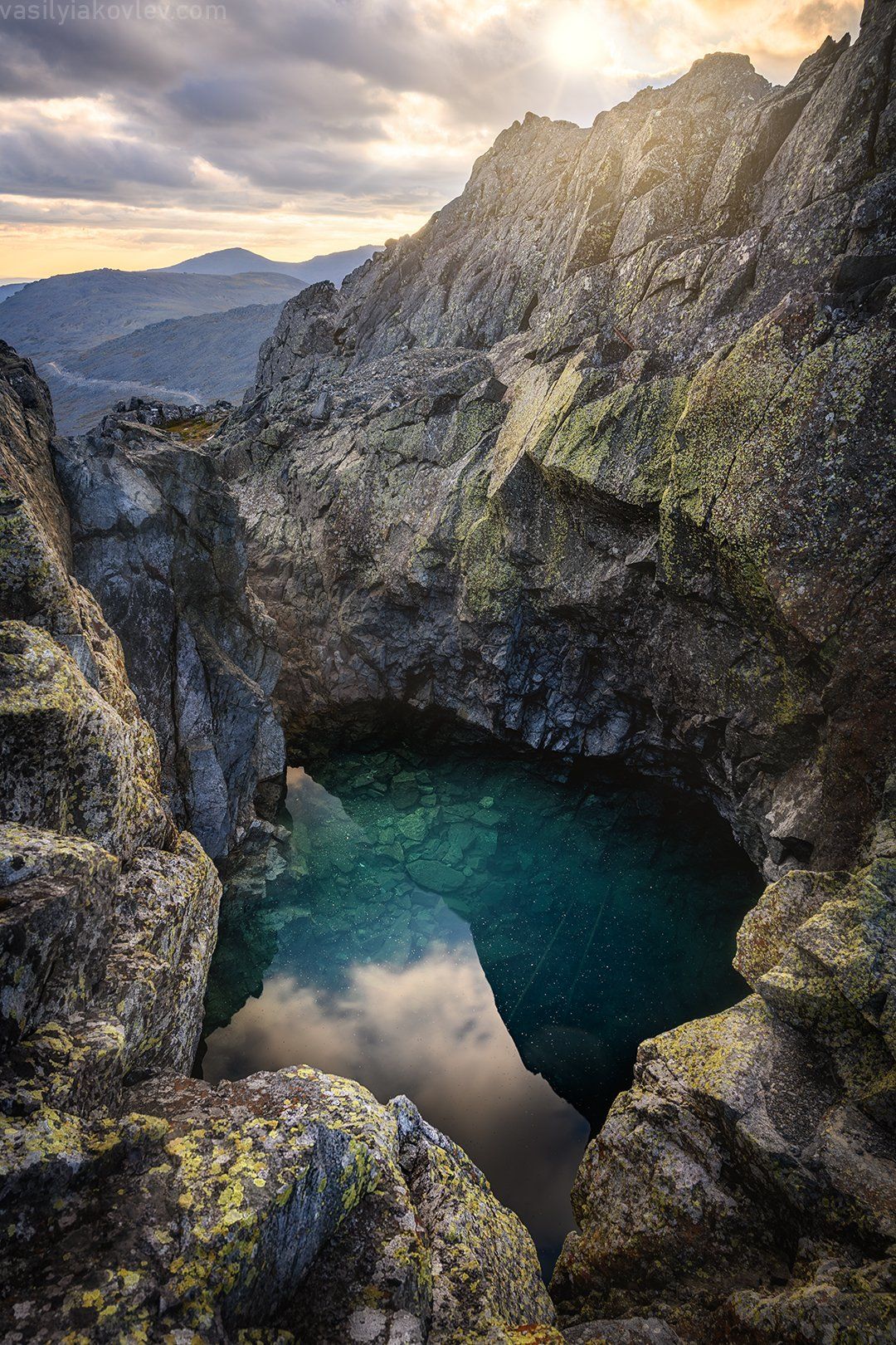 Северный Урал. Недалеко от вершины Серебрянского Камня есть небольшое озеро среди скал с водой изумрудного цвета. Найти его было не так просто, но нам это удалось.