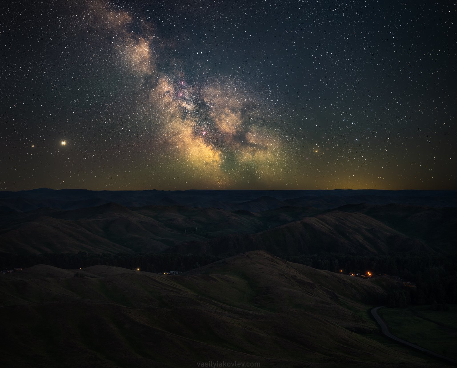 Помимо Долгих гор и хребта Карамурунтау в Оренбурьжье есть много прекрасных мест. Рядом с Орском есть еще один красивейший горный хребет - Губерлинские горы. Они находятся прямо на границе двух стран, которая проходит по реке Урал. На переднем плане этого снимка Россия, а на дальнем плане - уже Казахстан.