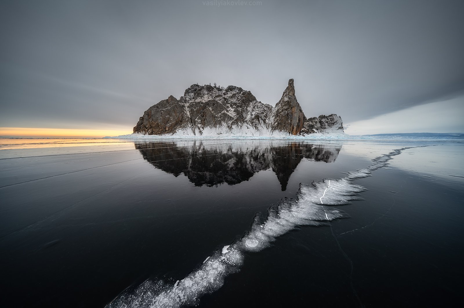 Молодой лед на мысе Хобой, самой северной точке острова Ольхон, здесь Байкал впадает в акваторию Малого Моря.