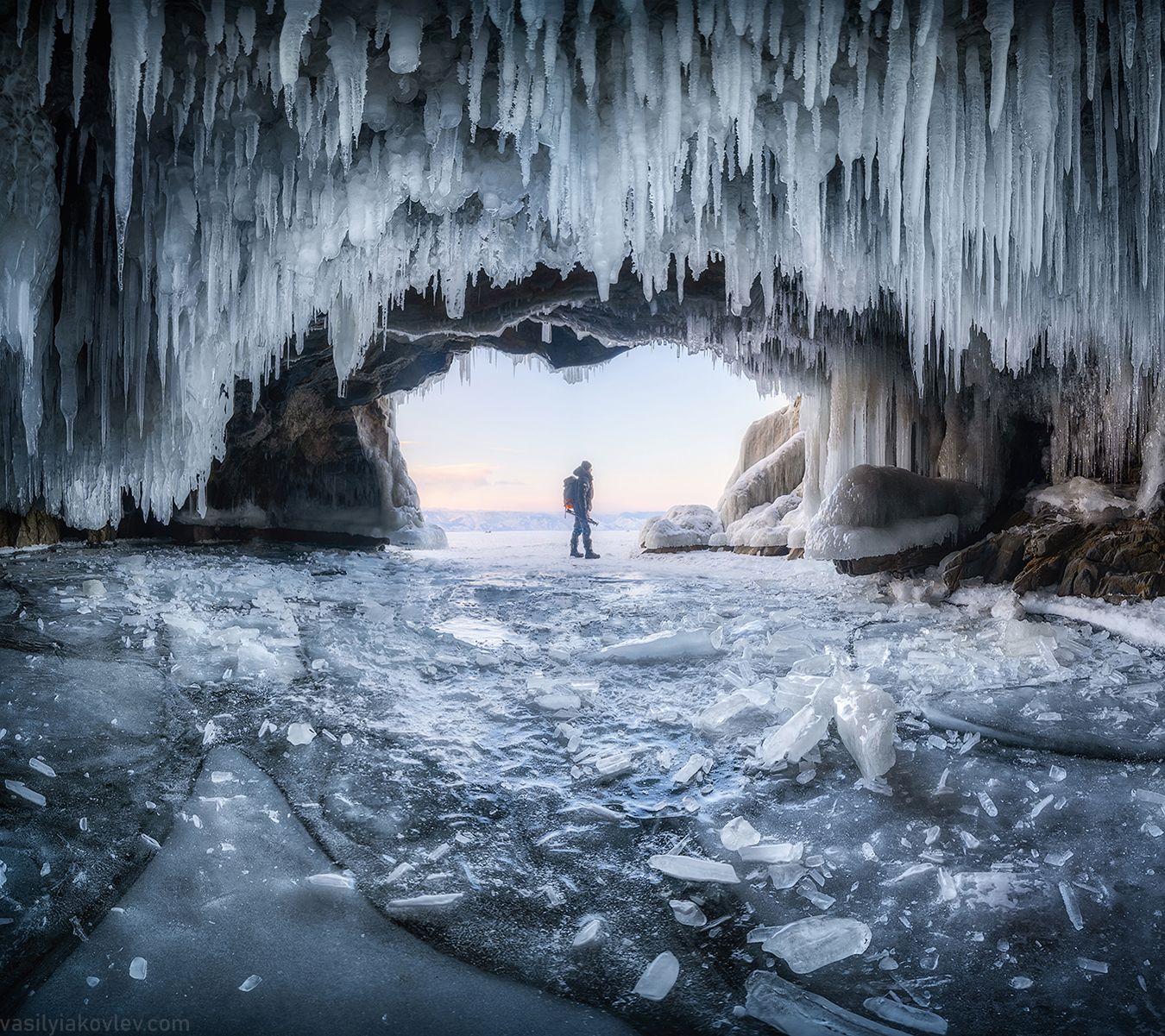 Сегодня хочу показать еще один красивый грот, который примечателен тем, что находится прямо в Хужире, недалеко от нашей гостиницы, и к нему можно было за 10 минут пройти пешком. Конечно, доступность данного грота это не только его плюс, но и минус, так как нетронутым его не назовешь, но даже с обломанными сосульками он все равно прекрасен! Но всегда хочется увидеть самые красивые, не сломанные гроты, поэтому в новом году вы едем на Байкал раньше большинства других групп. Присоединяйтесь, пока в группе остались места! А позирует мне здесь вновь замечательный итальянский пейзажный фотограф Nico Rinaldi.